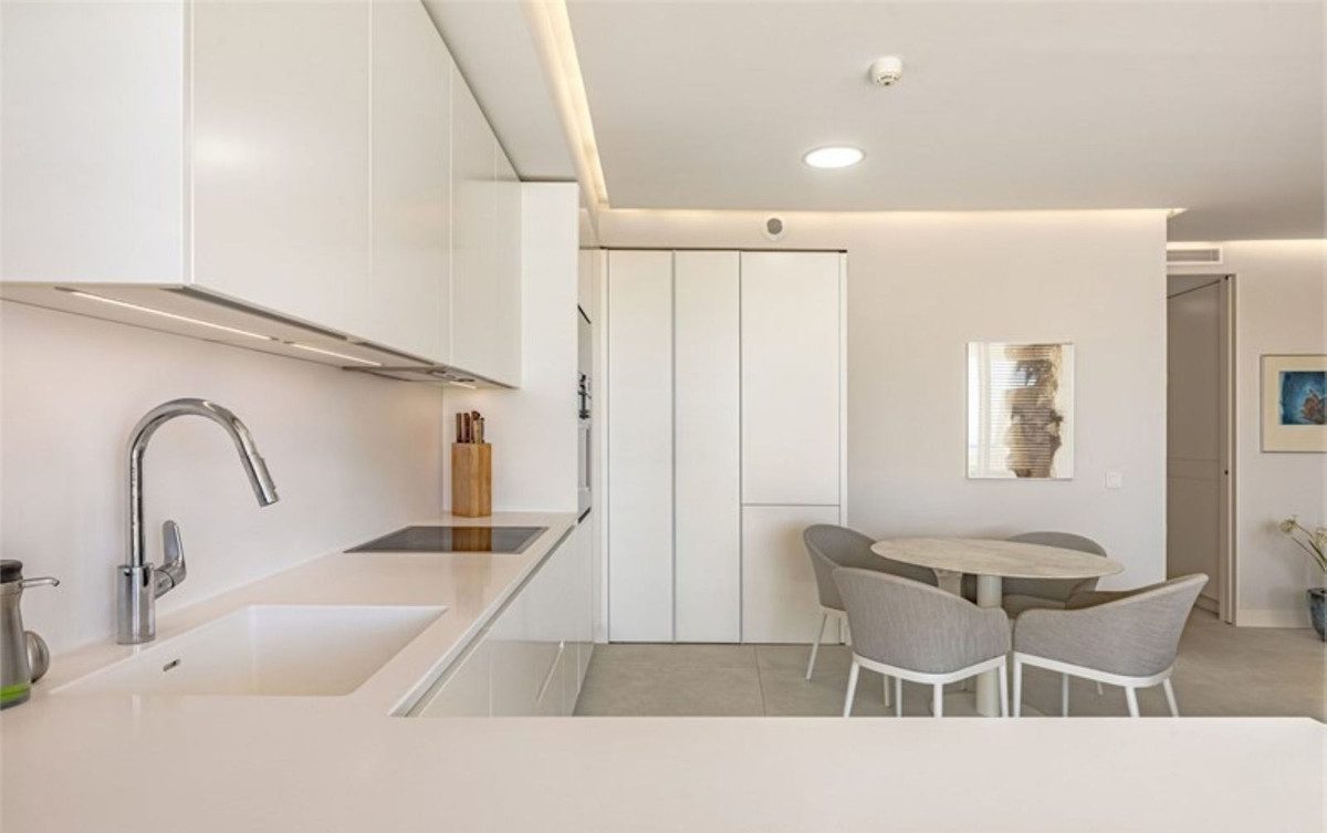 Espectaculares vistas al mar, a cinco minutos en coche de Estepona y a 15 min de Puerto Banús. Urbanización moderna en primera línea de playa a pie del paseo marítimo, que consta de 68 apartamentos. Posee jardines muy bien cuidados, piscina infinity, sala de conferencias y reuniones, gimnasio y zona de spa con piscina cubierta climatizada, jacuzzi, hamman y sauna. Este espectacular y luminoso apartamento donde disfrutar de las mejores vistas, cuenta con dos habitaciones, 2 baños con acabados de la firma Dombracht y 2 terrazas, la principal con vistas al jardín y al mar, además de un espacioso salón-cocina en planta abierta con electrodomésticos de la prestigiosa firma Gaggenau, garaje, trastero y seguridad 24h. Este apartamento de lujo es perfecto dado su ubicación privilegiada y los servicios de alta gama que ofrece para convertirse en su nuevo hogar. Ven a verlo.~