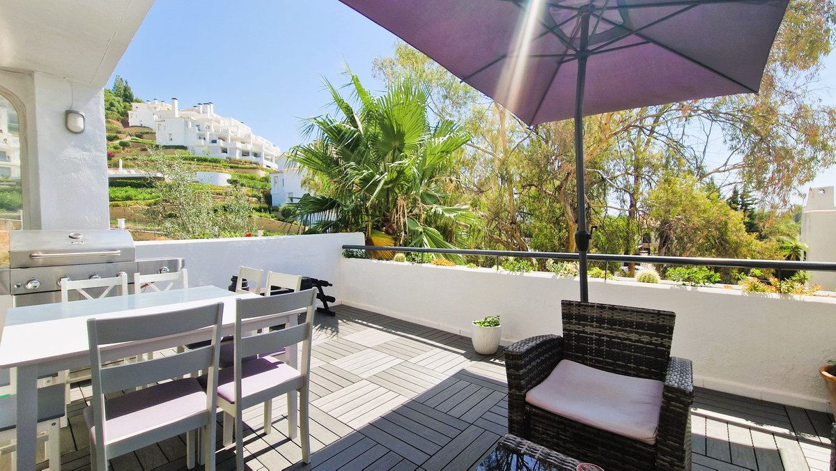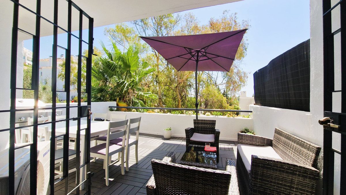 Duplex en Nueva Andalucia. Ubicada en una urbanización cerrada y segura, en pleno centro de Nueva Andalucía, esta propiedad ofrece estilo, confort y una ubicación inmejorable.Planta Baja y Espacios ExterioresSe accede por una amplia terraza privada que conduce al acogedor hall de entrada. El luminoso salón-comedor de concepto abierto integra una cocina moderna totalmente equipada y un aseo de invitados. Desde aquí, se accede a una agradable terraza con vistas a los cuidados jardines comunitarios, perfecta para relajarse o recibir invitados.Primera PlantaEn la planta superior se encuentran tres dormitorios de buen tamaño. El dormitorio principal dispone de baño en suite, mientras que los otros dos comparten un baño completo independiente. Una generosa terraza privada en esta planta ofrece vistas parciales al mar, ideal para disfrutar del café de la mañana o una copa al atardecer.Características adicionalesDos plazas de aparcamiento privado en sótano.La comunidad permite alquileres de corta temporada – excelente oportunidad de inversión.Totalmente renovada a finales de 2023: cocina, baños, ventanas, aire acondicionado, terrazas e instalación eléctrica nuevos.La contribución del propietario al fondo comunitario para la próxima rehabilitación exterior ya está abonada.Tanto si buscas un elegante hogar familiar como una inversión lista para alquilar, esta propiedad ofrece un estilo de vida moderno en una de las zonas más cotizadas de Marbella.~