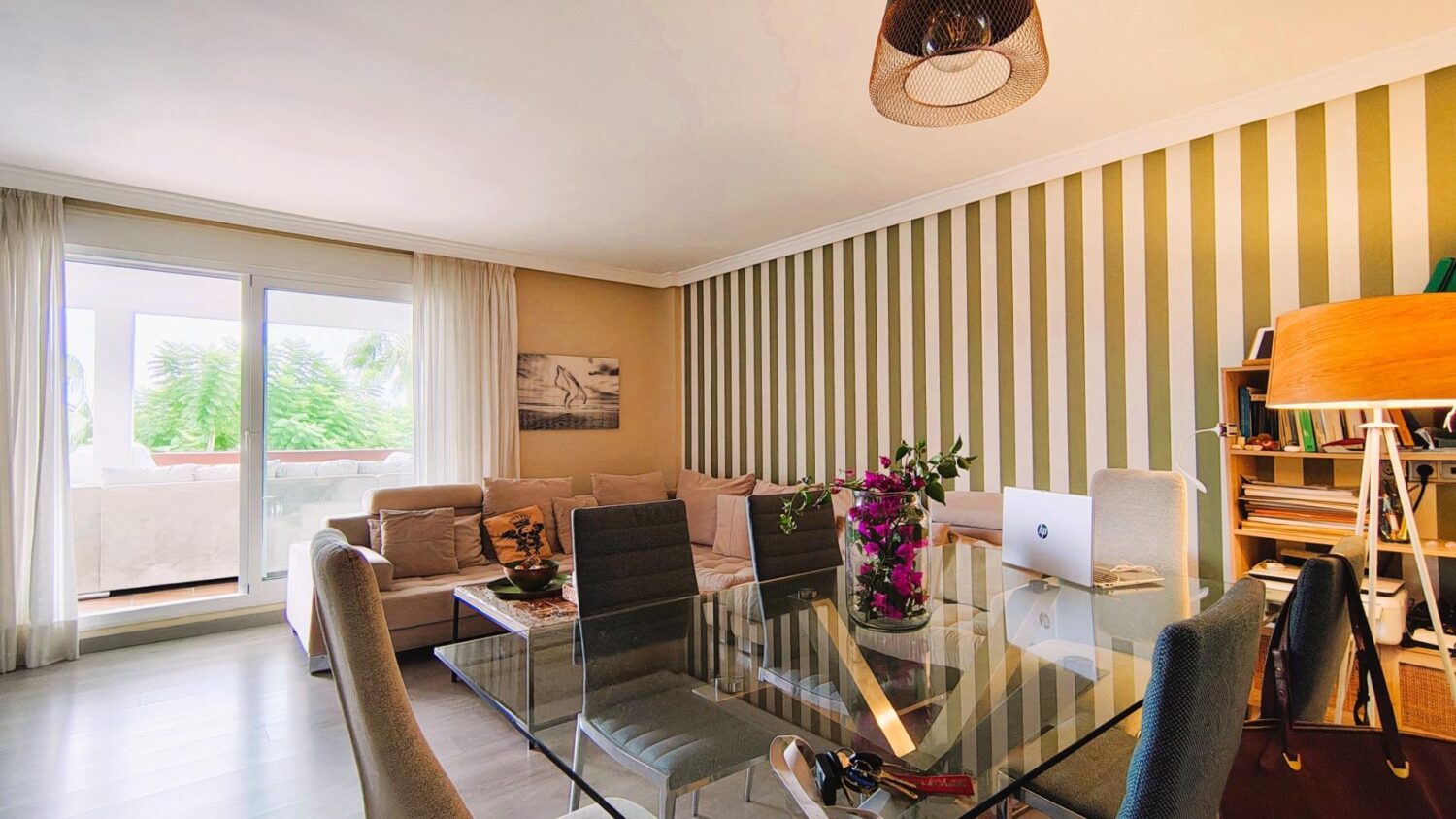 Elegante apartamento reformado en Selwo Hills – Listo para entrar a vivirUbicado en una urbanización impecablemente mantenida, este luminoso apartamento combina comodidad, estilo y funcionalidad en una de las zonas más demandadas de la Nueva Milla de Oro.La vivienda ofrece 93 m² interiores distribuidos en 2 dormitorios —el principal de concepto abierto— con armarios empotrados y 2 baños completos. El espacioso salón-comedor conecta directamente con la impresionante terraza principal de 40 m², parcialmente cubierta, con zona chill-out y vistas despejadas a la piscina y la montaña: un entorno ideal para relajarse o disfrutar en buena compañía.La cocina ha sido completamente renovada y equipada, e incluye un lavadero independiente optimizado con armarios zapateros a medida. Además, cuenta con una terraza trasera de 13 m², perfecta para uso auxiliar o de almacenaje.Características destacadas:Urbanización cerrada con portero automáticoPiscina comunitaria con jardines bien cuidadosGimnasio y sauna de uso exclusivo para residentesPlaza de garaje subterránea y trastero incluidosAire acondicionado frío/calorAscensor, doble acristalamiento y excelentes calidadesSituado frente al club de pádel y a tan solo 8 minutos andando de la playa a través de un paseo peatonal interno. A 5 minutos a pie del prestigioso Atlas American School of Marbella y con fácil acceso a todos los servicios de Estepona y San Pedro.Orientación Este. Estado: Impecable.Una propiedad ideal tanto para residencia permanente como para segunda vivienda de alto confort.~