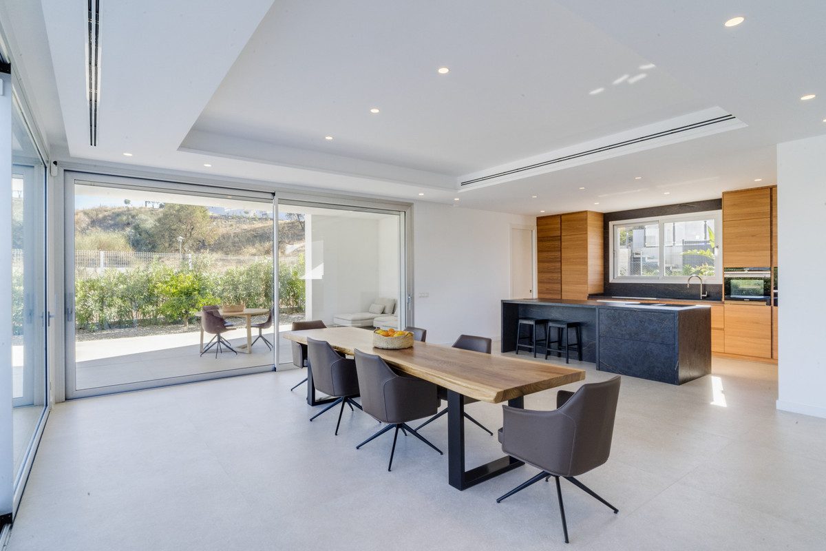 Esta excepcional villa contemporánea, exclusivamente disponible a través de su única agencia, está situada en el enclave de Sierra Gorda, Coin, Málaga. Con vistas panorámicas tanto de las montañas y el campo circundantes y se encuentra en una generosa parcela de 1.800m2, mostrando lo mejor de la Costa del Sol viviendo con su célebre clima y proximidad a todas las comodidades.La residencia cuenta con cuatro dormitorios uno de los cuales se utiliza como oficina pero se puede transformar fácilmente en un dormitorio. Dispone de tres baños en suite, así como un aseo de invitados que ofrece estilos de vida modernos con facilidad. La zona de estar y comedor de planta abierta es luminosa y espaciosa, mejorada por puertas de ventana de suelo a techo que conectan perfectamente el interior con las terrazas privadas, inundando el espacio con luz natural. La cocina, equipada con electrodomésticos Siemens y presentada en estado prístino, añade un toque de lujo y eficiencia, haciendo la propiedad ideal para los entusiastas de la gastronomía.Para vivir al aire libre, la propiedad destaca con sus amplias terrazas perfectas para comer al aire libre, una piscina privada con vistas a través del exuberante jardín y espectaculares montañas más allá, y una ducha al aire libre para mayor comodidad. Los sistemas domésticos inteligentes, incluidas las cámaras de vigilancia, la entrada de vídeo y la puerta de control remoto, proporcionan seguridad. La villa también está equipada con calefacción por suelo radiante en todas partes, unidades de aire acondicionado, paneles solares, riego automático y internet de fibra óptica, combinando comodidad y sensibilidad ecológica.Otros aspectos destacados incluyen un carport privado para dos vehículos, lavadero, doble acristalamiento, persianas eléctricas, persianas de seguridad y una puerta blindada.La suite principal ofrece un tranquilo oasis, generosamente proporcionado, tiene su vestidor y un elegante baño con ducha. Imagínate hundiendo en un baño cálido y relajante como luz natural se derrama a través de ventanas de imagen expansiva. Desde la comodidad de su elegante bañera de remojo, se trata de barrer vistas de las montañas. A medida que el mundo se desarrolla fuera, estás envuelto en quietud serena: una mezcla perfecta de privacidad y conexión con la naturaleza.Situado a solo cinco minutos en coche de supermercados y centros comerciales, y a solo 30 minutos de Marbella City, esta villa contemporánea ofrece una combinación incomparable de lujo, comodidad viviendo en la Costa del Sol.~