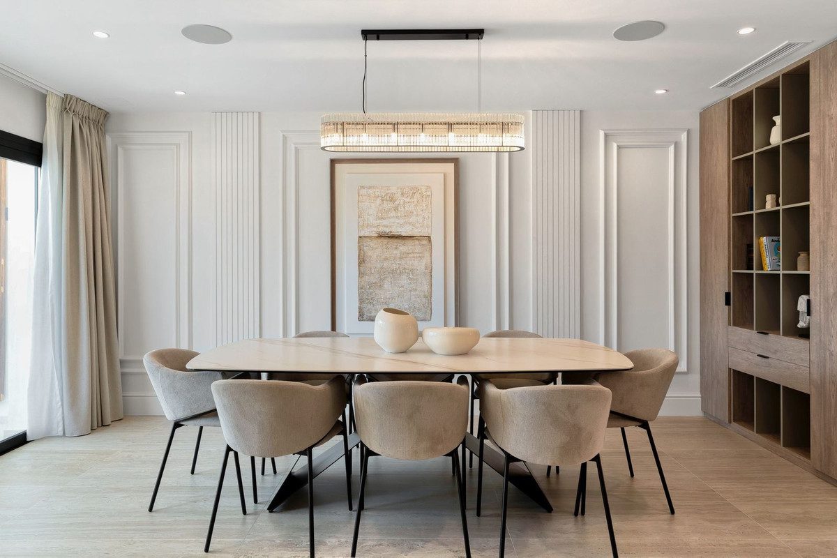 Casa adosada de cuatro dormitorios situada en Nueva Andalucía, Marbella. Una fantástica comunidad con calles tranquilas, amplio aparcamiento y seguridad las 24 horas. A solo unos minutos de la playa y del estilo de vida al aire libre de Puerto Banús.Ha sido objeto de una completa y profunda renovación. Se ha llevado a cabo un diseño interior profesional y vanguardista (clásico/moderno) en este proyecto.Consta de tres niveles. La planta baja, con una distribución diáfana entre la cocina, el comedor y la sala de estar, ofrece un espacio sociable y fácil de usar. Una cocina de alta calidad y bellamente diseñada, con encimeras de porcelana a juego, electrodomésticos Gaggenau y calefacción por suelo radiante. Un comedor formal con capacidad para 8 personas y una acogedora sala de estar, complementada con muebles hechos a medida y exclusivos para este proyecto, completan esta planta.La planta baja se abre a la terraza del jardín, que cuenta con un comedor adicional y una cocina exterior (una cocina de Corian blanco mate totalmente sólida y hecha a medida, con barbacoa, fregadero y nevera), complementada con una mesa de comedor para ocho personas, el espacio exterior ideal para el entretenimiento. Al salir al jardín, le espera una piscina climatizada de agua salada con asientos adicionales y tumbonas.En la primera planta hay tres dormitorios dobles con baño, cada uno con su propio diseño único y personalizado. Todos los baños han sido equipados con un alto nivel de calidad y también disponen de calefacción por suelo radiante.Se completa con un fantástico sótano con acceso independiente desde la parte delantera de la casa. Cuenta con su propia cocina, baño, vestidor y pared multimedia hecha a medida con chimenea. El acceso independiente adicional a la piscina desde el sótano es una característica única que solo tiene Vasari 25 en comparación con las casas de los alrededores, una característica que llena el sótano de luz natural. En este nivel también se encuentra un lavadero adicional, fuera de la vista de las zonas de estar, junto con un garaje cerrado y una plaza de aparcamiento.La propiedad ha sido completamente renovada por un promotor local profesional, incluyendo nuevas instalaciones de fontanería y electricidad con certificación, sistemas de aire acondicionado, ventanas y puertas, tres cocinas y lavadero de Porcelanosa, cinco baños de Porcelanosa, puertas de roble macizo en toda la vivienda y armarios y muebles hechos a medida. Orientada al «sur verdadero», esta casa disfruta del sol desde el amanecer hasta el atardecer.Póngase en contacto con nosotros para obtener más información y solicitar una visita.~