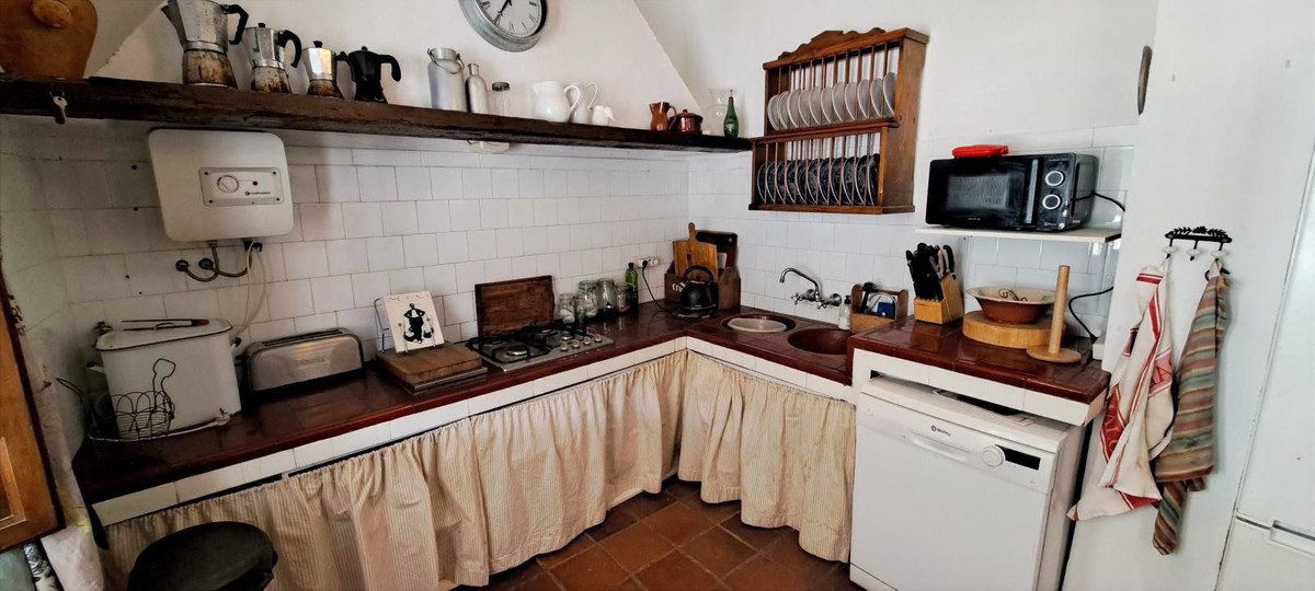 Hacienda en Alora: 4 dormitorios3 baños263.00 m² de superficie construida40 000,00 m² de superficie de terrenoOfrecemos esta preciosa hacienda auténtica, situada en un olivar productivo de más de 41 000 m², en Álora. La ubicación de este cortijo característico es perfecta. Hay unas vistas preciosas, mucho espacio y el encantador pueblo español de Álora se encuentra a poca distancia a pie de esta propiedad. Álora cuenta con todos los servicios necesarios, como supermercados, restaurantes, colegios, un centro médico y una estación de tren con conexión directa a la ciudad de Málaga y al aeropuerto internacional. Al entrar en esta finca por la gran puerta, llama inmediatamente la atención el auténtico y acogedor patio cerrado. A la derecha se encuentra la majestuosa vivienda (180 m²) y al otro lado está la zona de la piscina, seguida de un patio, un estudio, una azotea y un almacén.Al entrar en la casa de campo por las puertas dobles de madera, llegamos a un vestíbulo acogedor y espacioso. Este vestíbulo cuenta con un aseo de invitados, una majestuosa escalera que conduce a la primera planta y acceso a la cocina y la sala de estar. Lo especial es que desde este vestíbulo hay una hermosa vista a través de la casa y las vistas al exterior. La cocina es auténtica y espaciosa y cuenta con todos los electrodomésticos necesarios. Destaca la auténtica chimenea que hay en ella.El salón, de unos 45 m², es espacioso, luminoso y cuenta con muchos detalles bonitos. Las ventanas y la puerta doble ofrecen unas vistas increíbles del valle que se extiende a sus pies y hay una amplia terraza exterior para disfrutar del campo español. El salón cuenta además con vigas de madera en el techo, un precioso suelo y una gran chimenea. Para mayor comodidad, también hay una estufa de pellets para los meses más fríos del invierno. En la primera planta hay cuatro amplios dormitorios. El dormitorio principal es muy espacioso y tiene un cuarto de baño en suite y una estufa de leña propia. Además, hay un dormitorio con cuarto de baño en suite. Los otros dos dormitorios comparten un cuarto de baño moderno en el pasillo. Todo el conjunto está decorado con un mismo estilo y tiene mucho encanto. En el patio interior se encuentra la piscina (renovada en 2024), situada en una ubicación privilegiada. Junto a este bonito lugar hay un amplio patio con mesa de billar, un gimnasio con terraza en la azotea, un pequeño estudio con cervecería y un amplio almacén. Estas zonas disponen de agua corriente y electricidad, y estos edificios anexos se pueden utilizar para diversos fines. El conjunto es muy acogedor y se utilizará mucho en el clima mediterráneo. Fuera de la zona vallada de esta espaciosa vivienda hay un chalet de madera. Actualmente se utiliza como taller, pero también es apto para diversos fines. La parcela vallada de más de 41 000 m² está plantada con olivos ecológicos certificados (Agricola). En total hay unos 450 olivos, algunos de los cuales tienen más de 200 años. Actualmente, los árboles son cuidados por especialistas locales. Además de la conexión a la red de agua, hay un pozo productivo que puede abastecer de agua a la casa. Hay depósitos de 1 x 1000 y 1 x 5000 litros de almacenamiento de agua. Conexión a la red eléctrica y wifi disponibles. ¡Esta casa se vende amueblada! ~