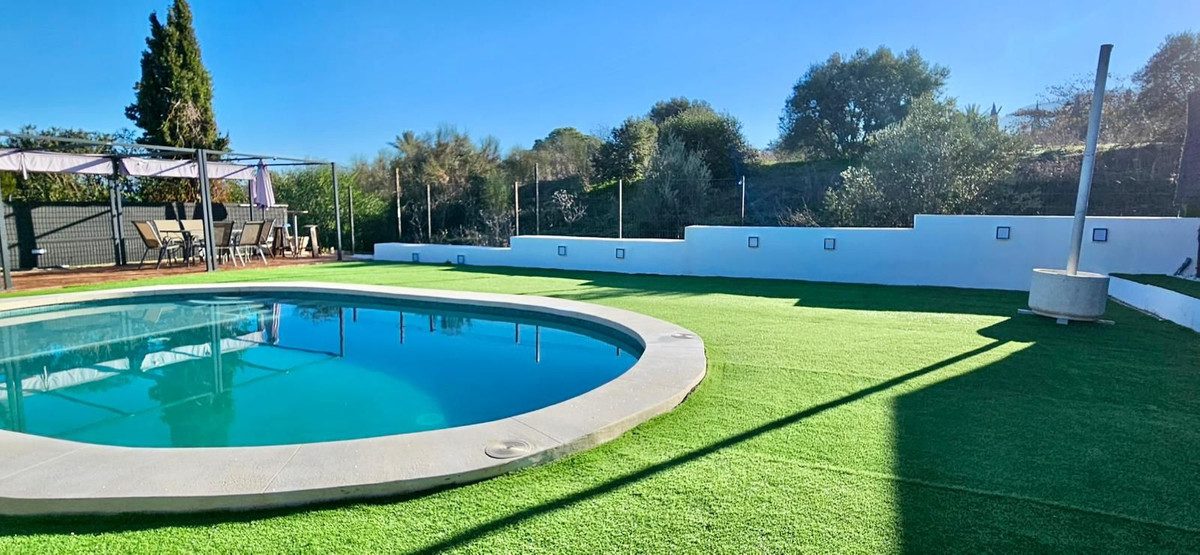 Rebajado para venta rápida, el propietario está abierto a ofertas realistas.Villa independiente moderna con una generosa parcela y piscina privada.Propiedad exclusiva.Esta magnífica villa independiente, ubicada en Miralmonte, goza de una ubicación privilegiada entre Coín y Alhaurín el Grande. Miralmonte es una urbanización tranquila y muy demandada, que ofrece un ambiente acogedor y familiar, rodeada de un impresionante paisaje rural español. Es el lugar ideal para quienes buscan tranquilidad y comodidad.La villa se distribuye en una sola planta y cuenta con dos dormitorios y dos baños. En su interior, encontrará un espacio luminoso y moderno, con una distribución diáfana y una cocina totalmente equipada y nueva. La abundante luz natural crea una sensación de amplitud y luminosidad. Se puede acceder a la propiedad tanto por la entrada principal como por la trasera. Al entrar, encontrará un amplio salón-comedor que conecta con la cocina. Junto al salón se encuentra el primer dormitorio doble, actualmente utilizado como habitación infantil, con armarios empotrados y espacio suficiente. Un pequeño pasillo, con armarios adicionales, conecta con el dormitorio principal: un espacio grande y cómodo con armarios empotrados y un elegante baño en suite con ducha. Junto al dormitorio principal se encuentra el baño familiar, con bañera y ducha. Ambos baños han sido recientemente renovados con acabados de alta calidad.La villa se encuentra en una generosa parcela de fácil mantenimiento. En la planta baja hay aparcamiento privado para varios vehículos y acceso a un garaje. En la parte trasera, encontrará una amplia terraza cubierta, perfecta para disfrutar de comidas al aire libre, junto a una gran sala de lavandería. Unas escaleras conducen a la planta superior, donde se encuentra la piscina privada, con una zona de descanso con sombra para relajarse o recibir invitados.Entre las características adicionales se incluyen aire acondicionado (frío/calor) en toda la casa. La urbanización se ha conectado recientemente al suministro de agua potable de Coín, lo que garantiza un servicio fiable sin depender de un pozo.Su ubicación es excelente: a tan solo 5 minutos a pie de un restaurante y bar, a 5 minutos en coche de Coín (con supermercados, tiendas y zonas de ocio) y a 10 minutos de Alhaurín el Grande. Ambas localidades cuentan con excelentes colegios, y hay transporte público regular en la carretera A-404. Las conexiones por carretera son excelentes, lo que facilita el acceso a la costa y a las zonas circundantes. Marbella – 25 minutosMálaga – 20 minutosFuengirola – 25 minutos~