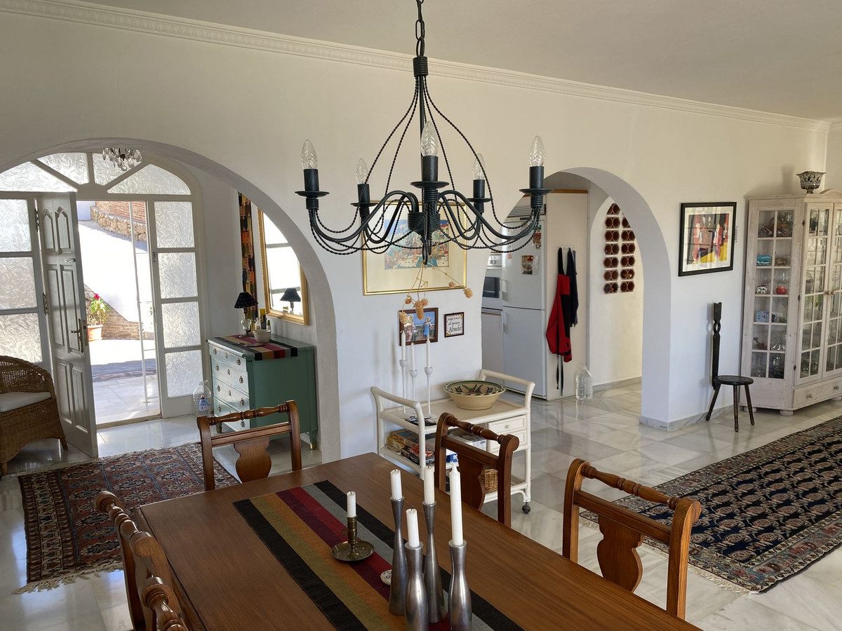 VILLA DE UNA SOLA PLANTA, RARA VEZ DISPONIBLE, EN UNA UBICACIÓN MUY DESEADA CERCA DEL HISTÓRICO PUEBLO DE MIJAS.Vistas panorámicas al mar, la montaña y el campo.Orientación sur, con entrada para coche y garaje.DE UN VISTAZO4 DORMITORIOS3 BAÑOS, 2 DE ELLOS EN SUITEMÁXIMA PRIVACIDADVISTAS PANORÁMICASPOTENCIAL DE MEJORAEsta encantadora propiedad se encuentra al final de una pequeña calle sin salida con solo otras dos villas vecinas.Portones eléctricos, entrada para coche y un amplio garaje individual con trastero adicional.Porche de entrada, vestíbulo, amplio salón-comedor con chimenea y acceso directo a la terraza, el jardín y la piscina.Cocina totalmente equipada, con fácil posibilidad de ampliar para crear una cocina-comedor.Dormitorio principal con baño en suite y acceso al jardín. 3 dormitorios dobles adicionales para invitados, uno con baño en suite y los demás con baño familiar.EXTERIORJardines privados con preciosas vistas al mar y piscina de 8 x 4 m.CARACTERÍSTICAS ADICIONALESDOBLE ACRISTALAMIENTOAIRE ACONDICIONADO PARCIAL Frío/CalorCALEFACCIÓN DE GASCANALONESMIJAS PUEBLO A 5 MINUTOS DE LA PLAYA Y FUENGIROLA A 12 MINUTOS, MÁLAGA A 25 MINUTOS, MARBELLA A 25 MINUTOS~