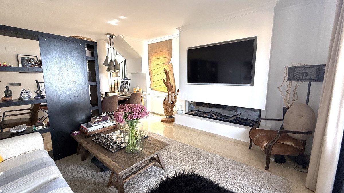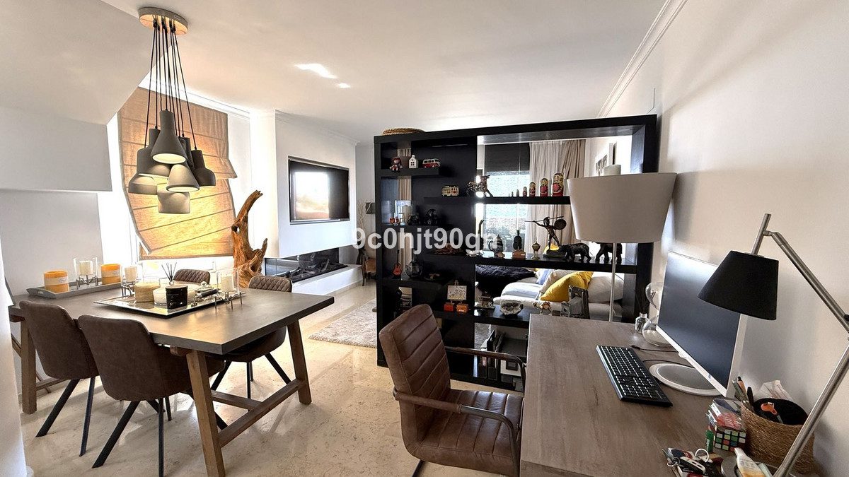 Descubra este ático reformado, ubicado en la prestigiosa urbanización Los Lagos de Santa María Golf en Elviria. Con una combinación perfecta de estilo contemporáneo y confort, este espacioso apartamento es ideal para quienes buscan una vida de calidad en una ubicación tranquila y bien comunicada.Este elegante ático cuenta con 2 dormitorios dobles y 2 baños modernos, ambos recientemente renovados con grifería de alta gama y elegantes acabados. La cocina nueva ha sido completamente renovada con muebles contemporáneos, electrodomésticos de calidad y una distribución limpia, ideal tanto para cocinar como para recibir invitados.La característica más destacada de esta propiedad es la terraza reformada, que ofrece vistas panorámicas al campo de golf y a la vegetación circundante, perfecta para cenar al aire libre, relajarse bajo el sol o disfrutar del jacuzzi y las puestas de sol.Las características adicionales incluyen suelos de mármol, armarios empotrados, aire acondicionado (frío y calor) y aparcamiento subterráneo con ascensor.Ubicada en un complejo seguro y bien cuidado con varias piscinas comunitarias y hermosos jardines, la propiedad está a solo minutos del popular centro comercial de Elviria, las playas de arena y el reconocido Club de Golf Santa María.Ya sea que busque una residencia permanente, una escapada vacacional o una inversión inteligente, este ático llave en mano lo tiene todo.~