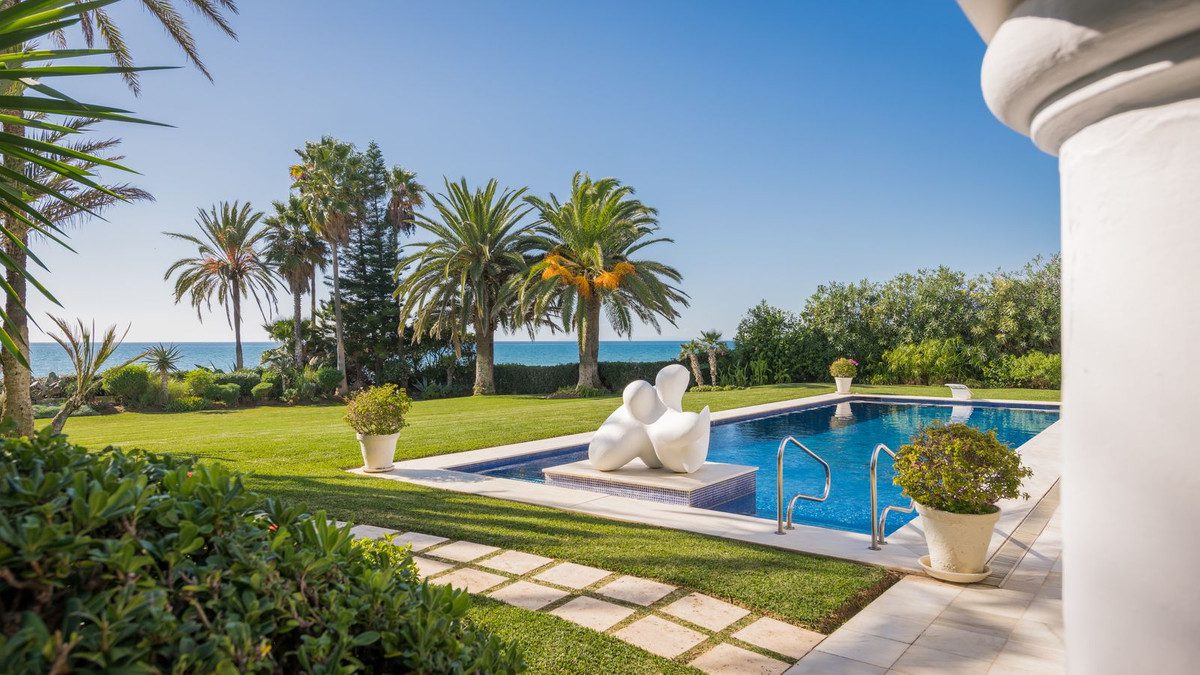 Con su espectacular entorno, hermosos jardines maduros, lujosa villa y, por supuesto, una historia única, esta es verdaderamente una propiedad singular en Marbella. Existen muchas villas impresionantes en ubicaciones privilegiadas en primera línea de playa a lo largo de la costa marbellí, pero en las arenas de Los Monteros –la dirección más exclusiva del lado este de la ciudad– se encuentra una magnífica propiedad cuyo emplazamiento frente al mar y vistas al Mediterráneo jamás podrán ser igualados. Además, es una mansión cuya propia historia forma parte del relato glamuroso de Marbella.La antigua residencia de la socialité estadounidense Aline Griffith y su esposo, Luis Figueroa y Pérez de Guzmán el Bueno, Conde de Romanones, la Villa Annabel fue escenario de algunas de las fiestas más deslumbrantes de Marbella. Aline mantenía un círculo de amistades influyentes que incluía a Jackie Kennedy, Audrey Hepburn y Wallis Simpson, muchas de las cuales recibía en esta casa frente al mar.Marbella está repleta de villas de apariencia exótica, pero pocas pueden presumir del brillo, el misterio y la intriga que se entretejen en la esencia de Villa Annabel, una de las propiedades más extraordinarias de la zona. Esta opulenta villa se alza sobre terrenos de algo más de una hectárea en Los Monteros, una de las direcciones más exclusivas de Marbella.Majestuosa y sofisticada, Villa Annabel es ideal para recibir invitados —especialmente porque sus interiores fluyen de manera natural hacia una amplia terraza y los jardines maduros que la rodean. De hecho, la casa fue escenario de algunas de las veladas más glamurosas de Marbella.La historia de esta espléndida villa frente al mar parece sacada de las páginas de una novela, ya que fue construida originalmente para la hija de un jefe de Estado español, quien se estableció aquí en lugar de Madrid en la década de 1950, atraída por el clima benigno y el estilo de vida de Marbella. En aquel entonces, la ciudad ya se perfilaba como un centro refinado, muy apreciado por un público internacional, que le brindaba la compañía de algunos de los personajes más elegantes y fascinantes de Europa y del mundo: desde miembros de la realeza y magnates empresariales hasta grandes celebridades.La villa, edificada en un emplazamiento privilegiado junto a la playa –algo que hoy en día ya no puede replicarse–, se distingue por ofrecer las vistas más espectaculares y una experiencia personal inigualable de mar, cielo, playa y privacidad. Todo ello rodeado por extensos jardines meticulosamente cuidados que envuelven la propiedad con una rica variedad de tonos, texturas y fragancias florales y marinas, acompañadas por la melodía del mar. No solo es un lugar de extraordinaria belleza, sino también de gran intimidad, delimitado únicamente por otras grandes propiedades con amplios jardines.~