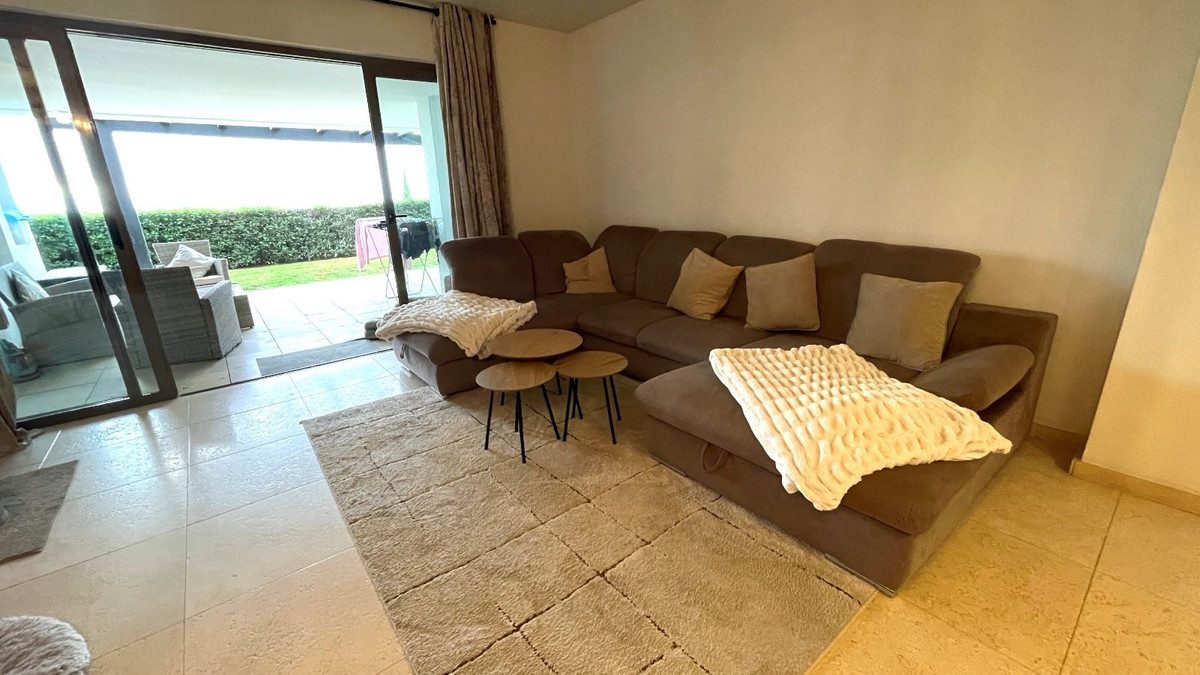 Apartamento Planta Baja, Los Flamingos, Costa del Sol.2 Dormitorios, 2 Baños, Construidos 120 m², Terraza 30 m².Posición : Primera línea de Golf, Cerca de Golf.Orientación : Sur.Estado : Buen.Piscina : Comunitaria.Climatización : Aire Acondicionado.Vistas : Mar, Golf.Caracteristicas : Terraza Cubierta, Ascensor, Armarios Empotrados, Terraza Privada, Trastero, Baño En-Suite, Suelos de Mármol.Muebles : Sin Amueblar.Cocina : Equipada.Jardin : Comunitario.Seguridad : Recinto Cerrado.Aparcamiento : Garaje.~