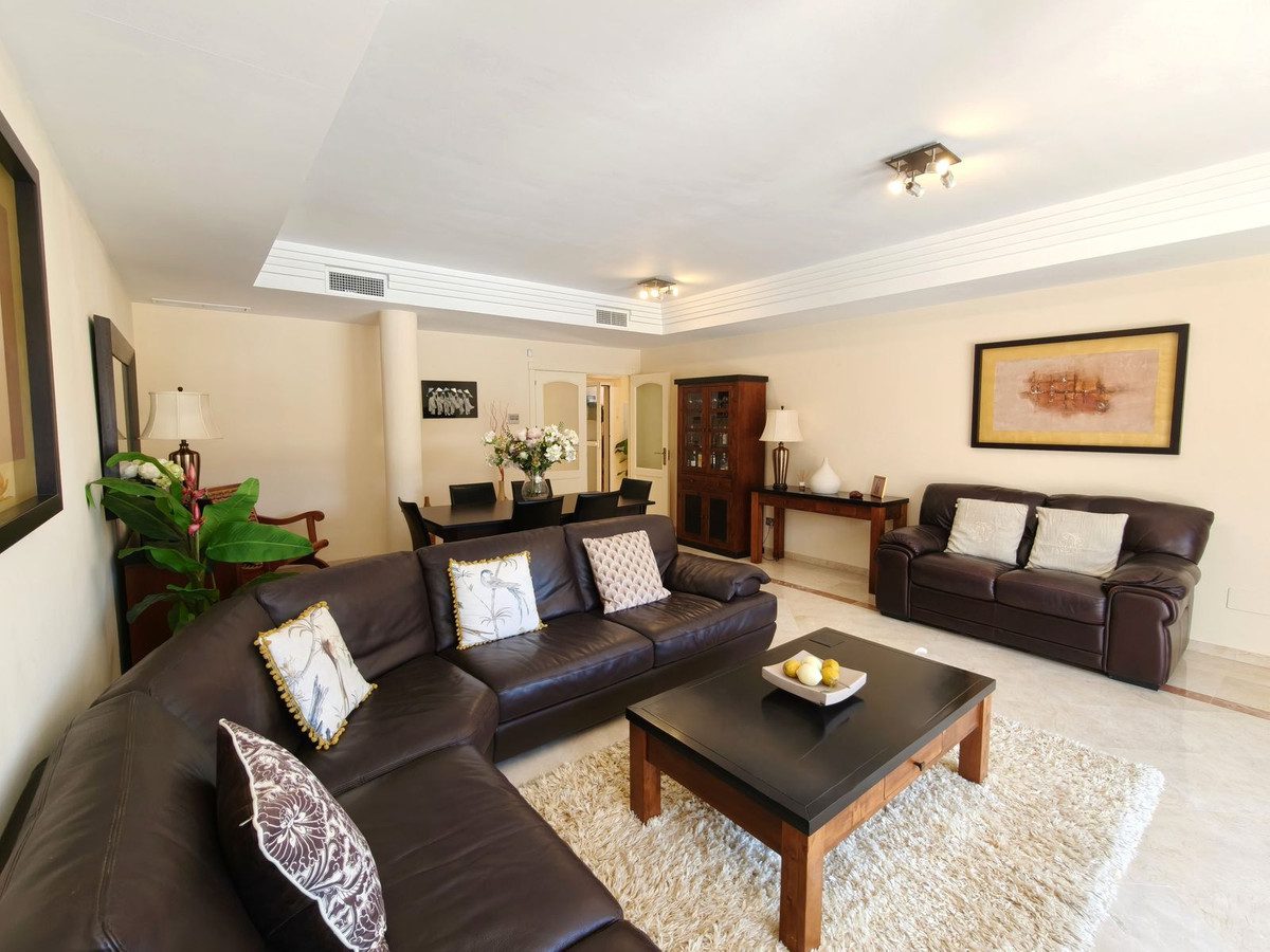 Amplio apartamento con jardín de 3 dormitorios en San Roque ClubEste excelente apartamento en planta baja ofrece una combinación perfecta de confort, privacidad y belleza natural. La propiedad cuenta con una piscina privada y un precioso jardín paisajístico mantenido por la comunidad, además de acceso a una gran piscina comunitaria.El interior ha sido diseñado para ofrecer funcionalidad y estilo, con tres dormitorios que tienen acceso directo a la terraza, dos baños con calefacción por suelo radiante y un aseo de invitados. El espacioso salón-comedor se conecta de forma fluida con la terraza, creando un ambiente luminoso y abierto, ideal para recibir invitados o relajarse. La cocina, totalmente equipada, se complementa con un lavadero independiente, mientras que una parte de la terraza se ha cerrado para servir como un cómodo segundo salón o espacio de oficina.Entre las características adicionales se incluyen aire acondicionado frío/calor, dos plazas de aparcamiento privadas y una plaza para buggy. El apartamento tiene orientación suroeste, lo que garantiza abundante luz natural y una gran privacidad, con una frondosa vegetación que proporciona una separación natural respecto a las propiedades vecinas.Ubicado dentro del prestigioso San Roque Club, los residentes disfrutan de seguridad las 24 horas, una casa club y dos campos de golf de primer nivel en un entorno natural tranquilo. La ubicación ofrece un fácil acceso al vibrante puerto deportivo de Sotogrande, hermosas playas, el colegio internacional de Sotogrande y varios campos de golf de renombre, lo que lo convierte en un hogar ideal para quienes buscan lujo, tranquilidad y comodidad.~