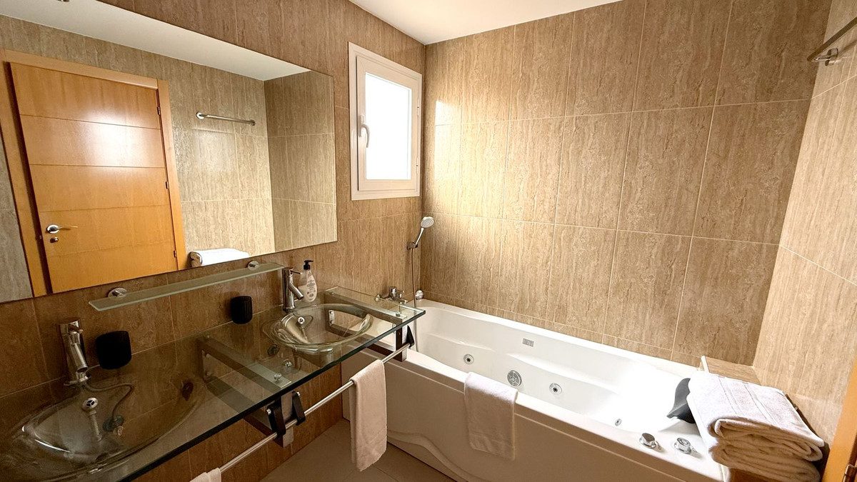 Elegante apartamento en venta en El Paraíso, entre Marbella y Estepona, Cortijo del MarDescubra este precioso y elegante apartamento ubicado en la tranquila y cuidada zona residencial de El Paraíso, con una ubicación ideal entre Marbella y Estepona.Diseñada con un toque elegante y contemporáneo, esta vivienda cuenta con 2 amplios dormitorios y 2 modernos baños: uno con una elegante bañera exenta y el otro con ducha a ras de suelo.La luminosa cocina semiabierta, conectada al salón, incluye una práctica zona de lavandería con lavadora y secadora.Disfrute del estilo de vida de la Costa del Sol desde su amplia terraza, perfecta para comer al aire libre y relajarse; una de ellas incluso cuenta con barbacoa de obra y preciosas vistas a la piscina comunitaria, los jardines y el mar.Ubicado en un tranquilo complejo residencial privado, este apartamento ofrece la combinación perfecta de tranquilidad y accesibilidad, ideal como residencia permanente o como escapada vacacional. Su ubicación ofrece fácil acceso a campos de golf, impresionantes playas, restaurantes y todos los servicios cercanos.~