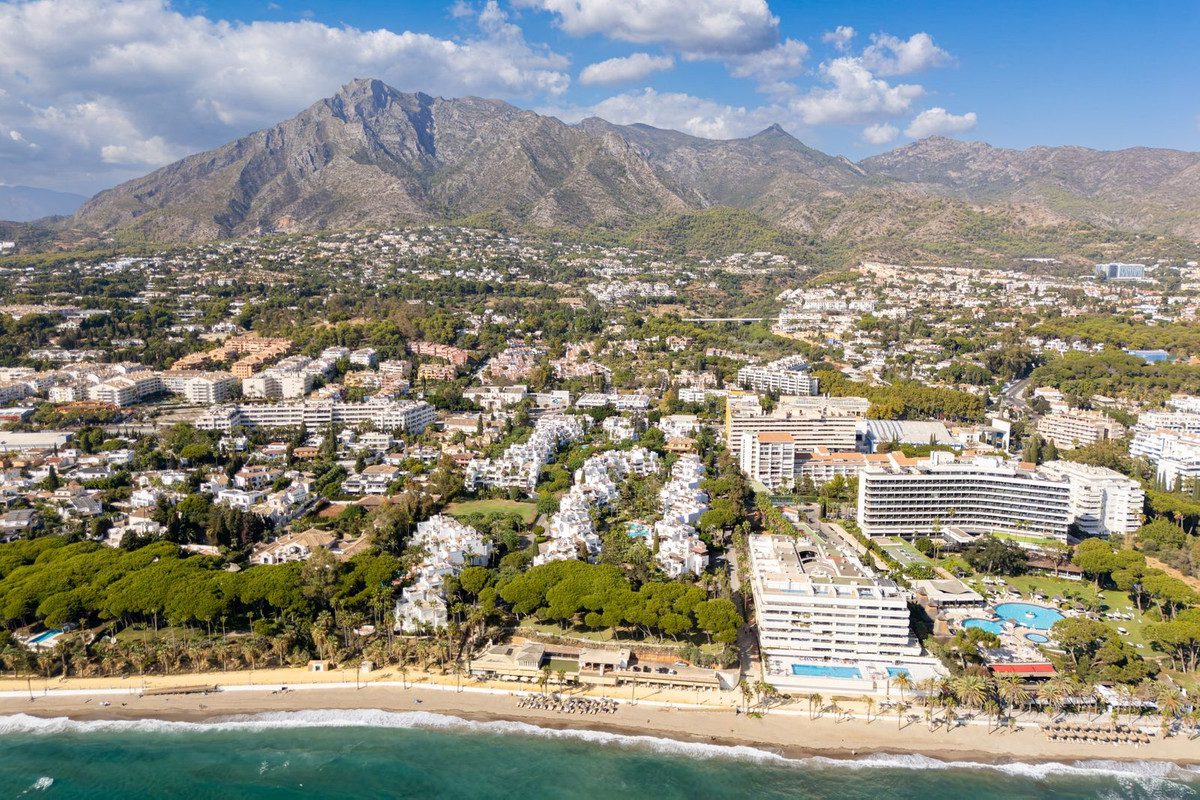 Ático Dúplex en Esquina en la Milla de Oro de Marbella – ¡Lado de la Playa!La ubicación más exclusiva de toda la Costa del Sol.Este impresionante ático dúplex se encuentra a solo unos pasos de la playa, en la prestigiosa Milla de Oro de Marbella.Ofrece 3 dormitorios y 3 baños (2 de ellos en suite), así como tres amplias terrazas que disfrutan de sol durante todo el día, una de ellas equipada con barbacoa.La propiedad cuenta con aire acondicionado independiente en cada planta (frío y calor), ascensor y aparcamiento cerrado dentro del complejo. Las ventanas y puertas son de alta calidad, con persianas en todos los dormitorios para mayor comodidad y privacidad.Ubicada en un entorno tranquilo y natural junto al mar, esta residencia combina paz y comodidad — todo se encuentra a poca distancia a pie, por lo que no es necesario usar el coche.Disfrute de fantásticas vistas abiertas a la naturaleza circundante y vistas parciales al mar. El complejo residencial ofrece una gran piscina comunitaria y hermosos jardines maduros, creando un ambiente seguro, sereno y con una agradable sensación vecinal.Ubicación:A solo 2 minutos a pie de la playa y del paseo marítimo, y a poca distancia de los tres hoteles más lujosos de Marbella — Don Pepe Gran Meliá, Marbella Club y Puente Romano.Supermercados, restaurantes, farmacias y clínicas médicas están a menos de 5 minutos andando. El centro de Marbella está a unos 10 minutos a pie, y Puerto Banús aproximadamente a 4,5 km.Distribución:Al entrar, encontrará un recibidor que separa el salón-comedor de la cocina totalmente equipada con lavadero independiente. En esta planta también hay dos amplios dormitorios dobles y dos baños (uno de ellos en suite), además de una soleada terraza orientada al sureste con vistas al jardín y la piscina.La planta superior alberga la suite principal, que cuenta con dos impresionantes terrazas y una piscina privada tipo plunge pool con vistas parciales al mar. Al ser una vivienda en esquina, el ático disfruta de total privacidad en todas las terrazas y luz natural durante todo el día. Un pequeño pasillo conecta el dormitorio con el baño y el vestidor, con acceso a la otra terraza.~