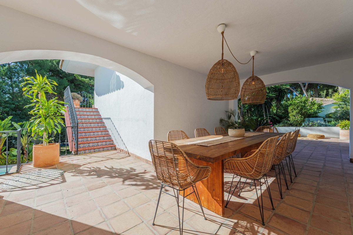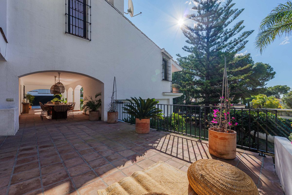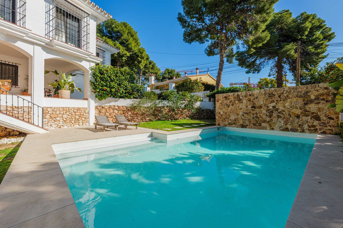 Exclusiva casa de estilo mediterráneo en Pinares de San Antón, situada sobre una amplia parcela de 1.184 m². Su arquitectura combina la pureza de la fachada blanca con detalles en piedra natural y un tejado de tejas color terracota, creando un conjunto armonioso y atemporal. La vivienda, distribuida en dos plantas y con una superficie construida total de 412 m², disfruta de orientación suroeste, lo que garantiza una excelente luminosidad durante todo el día y agradables vistas despejadas.Completamente reformada hace apenas cinco años, esta magnífica propiedad se presenta en un estado impecable y lista para entrar a vivir. Se vende totalmente amueblada, lo que permite disfrutarla desde el primer día sin necesidad de realizar ninguna inversión adicional.Combina a la perfección diseño contemporáneo, eficiencia energética y espacios amplios y luminosos que invitan al confort. Dispone de acabados de alta calidad, paneles solares para electricidad y agua caliente, y un puerto de carga para coche eléctrico, aportando un importante valor añadido en sostenibilidad y ahorro energético.La vivienda ofrece una distribución ideal: moderna cocina abierta, luminoso salón con acceso directo a las terrazas y a la zona de piscina, tres elegantes dormitorios, un sofisticado despacho convertible en dormitorio adicional y una amplia sala de juegos que, gracias a su tamaño, podría transformarse incluso en dos dormitorios más, ofreciendo múltiples configuraciones según las necesidades del comprador. Además, cuenta con dos baños completos y dos aseos.Una oportunidad única para adquirir una propiedad versátil, moderna, completamente equipada y preparada para disfrutar desde el primer día.La planta baja alberga un encantador porche cubierto con arcos, ideal para disfrutar de momentos de relax al aire libre. Frente a la casa, la piscina se integra con un jardín de inspiración tropical, rodeado de vegetación exuberante y con una zona de tumbonas de madera que invita al descanso. El jardín cuenta, además, con una zona de gimnasio cubierto. El conjunto transmite una atmósfera de serenidad y frescura, propia del estilo de vida mediterráneo.Ubicada a tan solo 10 minutos en coche del paseo marítimo de El Palo, esta propiedad ofrece una combinación perfecta de privacidad, confort y proximidad a la ciudad. Rodeada de naturaleza y con excelentes conexiones tanto por transporte público como por la autopista A7, representa una oportunidad excepcional para disfrutar de la tranquilidad sin renunciar a la comodidad de vivir cerca de Málaga.~