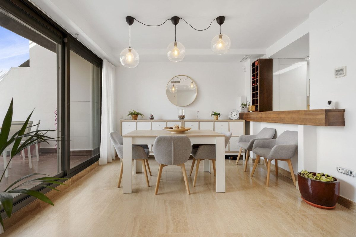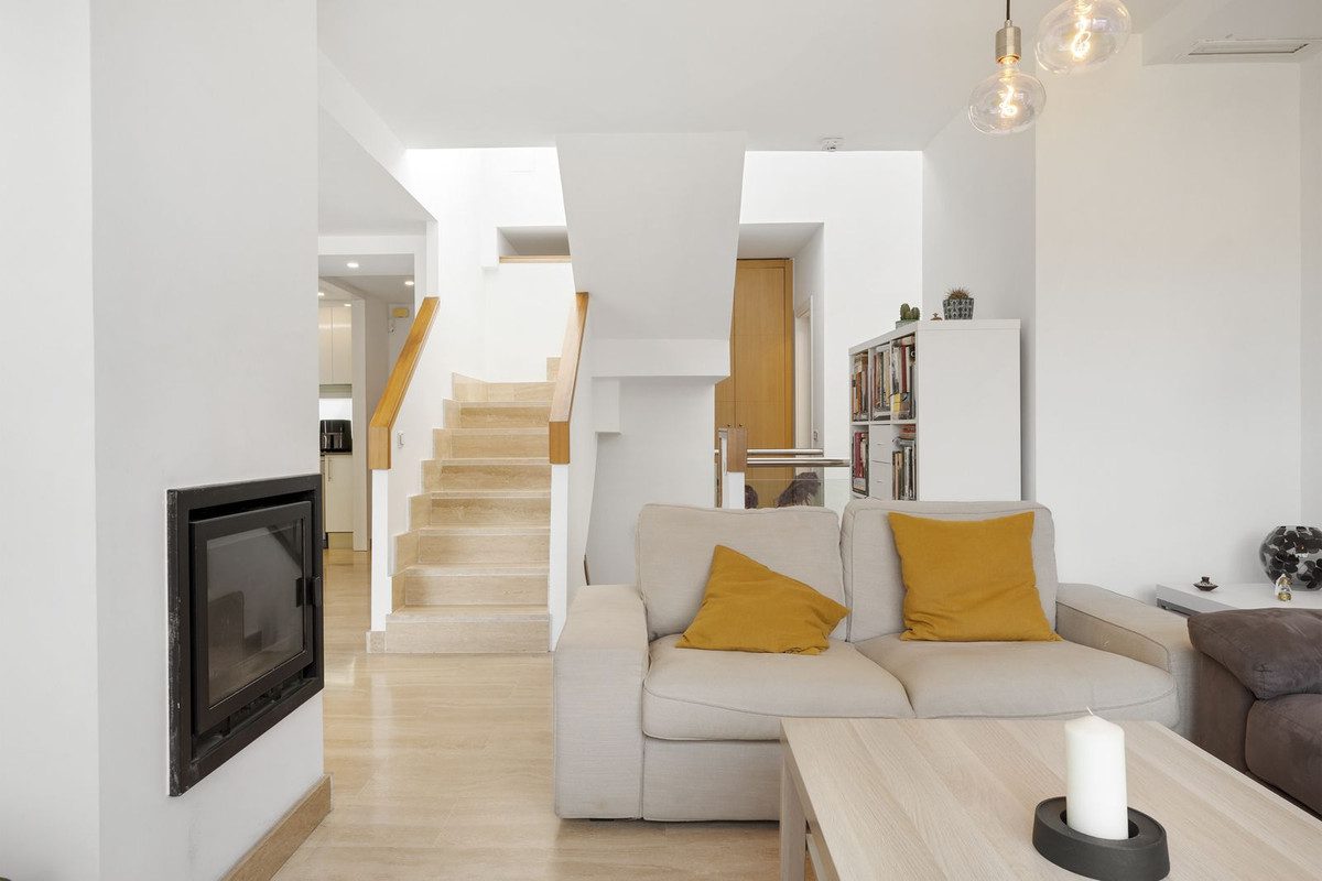 Magníficamente presentado ático tríplex en La Cala de Mijas. A solo cinco minutos en coche del encantador pueblo costero de La Cala de Mijas, este ático tríplex, recientemente renovado, combina estilo moderno, amplitud y una vida sostenible.La vivienda se distribuye en tres plantas. En la planta principal encontramos un luminoso salón comedor de concepto abierto con una cocina contemporánea y un aseo de cortesía. Desde aquí se accede a una terraza orientada al oeste que disfruta de sol por la tarde, creando un espacio perfecto para relajarse.En la planta inferior se ubican tres dormitorios más grandes de lo habitual, todos con suelos nuevos. Dos de ellos cuentan con baño en suite, ambos modernizados, y el tercero dispone de un baño independiente, también renovado. Incluso hay espacio en esta planta para una zona utilizada como oficina.La planta superior alberga un amplio solárium, igualmente orientado al oeste, ideal para tomar el sol, recibir invitados o contemplar las puestas de sol. Esta planta cuenta además con un sistema de placas solares que genera suficiente electricidad no solo para cubrir todo el consumo, sino también para vender el excedente a la red, lo que supone facturas de electricidad de 0 € al mes.El precio incluye dos plazas de aparcamiento subterráneo y un trastero privado. La urbanización cerrada ofrece extensas zonas ajardinadas con fuentes de agua, tres piscinas (una de ellas recientemente renovada), servicio de conserjería y un sistema de videovigilancia CCTV 24 horas en todos los accesos y garajes.Se trata de una oportunidad única para disfrutar de una vivienda elegante, eficiente y segura en una de las zonas más deseadas de la Costa del Sol.~