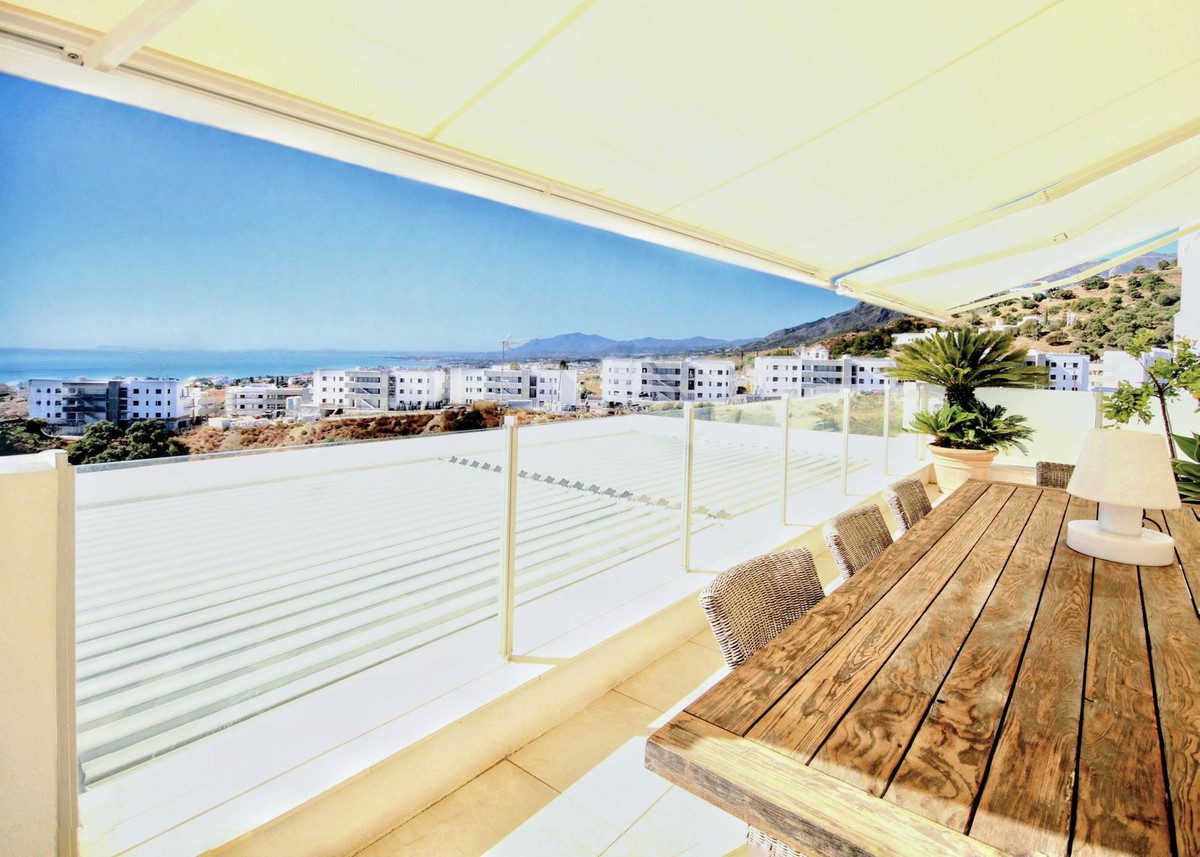 IMPRESIONANTE ático con vistas panorámicas sin obstáculos en el precioso complejo cerrado Elements, de reciente construcción, en Altos de Marbella, a solo 8 minutos en coche de las atractivas playas y del arco de Marbella. Esta glamurosa vivienda orientada al suroeste cuenta con magníficas vistas panorámicas, comodidades de primera categoría y una sensación de lujo y confort en todas sus estancias. La vivienda ha sido renovada con acabados de alta gama y está lista para entrar a vivir, llave en mano.Un ascensor semi-privado nos lleva a un piso/entrada privada. Al entrar, encontramos un luminoso y amplio espacio de estar de planta abierta con techos altos. Suelo de mármol de alta calidad en toda la vivienda y una cocina bien equipada con una preciosa isla con encimera de cuarcita. Todas las luces del techo son de bajo consumo y regulables.El salón cuenta con una chimenea a medida y una bellamente diseñada pared de acento. En esta planta también se encuentra el dormitorio de invitados, elegantemente amueblado con una cama queen y un encantador escritorio integrado con estantes. También encontramos el baño de invitados en esta planta, que ofrece una amplia ducha con grandes losas de mármol y grifería de diseño.La fantástica terraza de la planta baja se extiende a lo largo de toda la primera planta—unos impresionantes 17,5 metros—y es accesible desde el salón y el dormitorio de invitados. Tiene espacio para una gran mesa. Los toldos automáticos se pueden desplegar para proteger el área del sol, si se desea. En el extremo hay un rincón privado con una acogedora zona de estar, ideal para disfrutar de una copa de vino y de las vistas al Mediterráneo, la ciudad de Marbella y las montañas cercanas.Una escalera moderna y sofisticada con una gran ventana nos lleva a la planta superior, donde se encuentra el dormitorio principal y un solárium. La suite principal cuenta con amplios armarios empotrados. El baño en suite está realizado con losas negras con vetas blancas, que, en contraste con el lavabo y los muebles blancos, resulta simplemente impresionante. El solárium es completamente privado e ideal para tomar el sol, con una mesa alta para disfrutar de un aperitivo y, sin duda, de las increíbles vistas de 360º.En la primera planta, la lavandería está separada de la cocina por una puerta, con espacio para almacenamiento (como despensa), y allí se encuentra la lavadora. Bajo la escalera hay almacenamiento adicional. Todos los electrodomésticos son de la marca Siemens. El penthouse cuenta con un sistema central aerotérmico de calefacción y refrigeración altamente eficiente, con termostatos independientes en el salón y los dormitorios, y suelo radiante en el dormitorio principal y baño de la segunda planta.Elements es moderno, de líneas limpias, con una encantadora zona de piscina y parasoles de estilo tropical. Los jardines cuentan con vegetación madura, como olivos, que proporcionan una hermosa sombra natural durante el calor del verano. Los residentes también tienen acceso a un clubhouse con gimnasio equipado con pesas y otros aparatos, un gran televisor para ver deportes o películas, un área de descanso para fiestas y reuniones, una cocina totalmente equipada, un baño y una encantadora terraza con mesa de comedor.Superficie construida interior: 134 m².Terrazas: 112 m².Plaza de aparcamiento: 12 m².Total: 258 m².Gastos de comunidad: 240 € al mes.IBI: 880 € al año.~