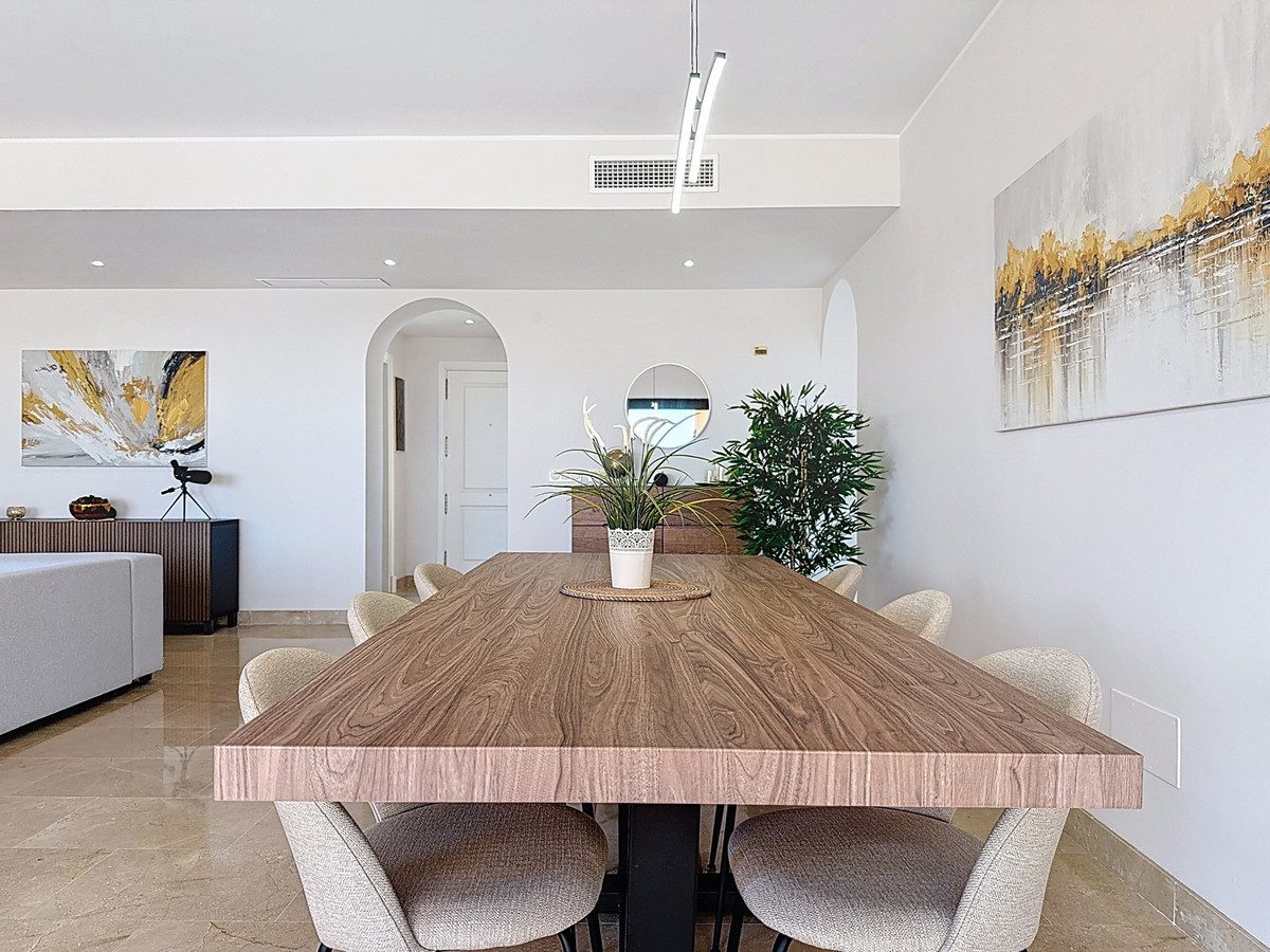 Se presenta un exclusivo ático en primera línea de golf, ubicado en Sabinillas, Manilva, en la provincia de Málaga. Esta propiedad destaca por su privilegiada localización, sus impresionantes vistas al mar y al campo, así como por sus amplios y luminosos espacios. Ideal para quienes buscan confort, seguridad y un entorno tranquilo, sin renunciar a la cercanía de la playa y todos los servicios.La vivienda cuenta con una superficie construida de 140 m², distribuidos en tres dormitorios con armarios empotrados y dos baños completos. El salón, de generosas dimensiones, da acceso a una espectacular terraza privada de 64 m², perfecta para disfrutar del clima mediterráneo y de las vistas panorámicas. La cocina está completamente equipada y dispone de un práctico lavadero. El ático se entrega totalmente amueblado, en excelente estado, y cuenta con aire acondicionado, persianas de seguridad y una entrada reforzada para mayor tranquilidad.Entre las zonas comunes, se encuentran una piscina y jardines cuidados, además de pistas de tenis y pádel para los amantes del deporte. La urbanización es cerrada, con servicio de seguridad 24 horas, cámaras de vigilancia y acceso restringido, lo que garantiza la máxima privacidad. El ático incluye una plaza de garaje privada, añadiendo un plus de comodidad.La ubicación es inmejorable, a pocos minutos del puerto, la playa, colegios y todo tipo de comercios y servicios. La zona ofrece una excelente calidad de vida, combinando tranquilidad, naturaleza y fácil acceso a las principales vías de comunicación. No deje pasar la oportunidad de visitar esta magnífica propiedad. Para más información o concertar una visita, no dude en ponerse en contacto.~