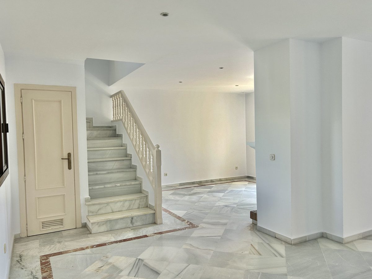 Amplio Apartamento de dos plantas más planta de garaje de esquina situada en la Urbanización el Encinar de Sotogrande muy cerca de toda la zona de servicios de Sotogrande . En la planta baja se encuentra el amplio garaje con una zona de trastero. Se accede a la vivienda a través de una escalera exterior que da a un porche de entrada. La primera planta de la casa consta de: hall de entrada , aseo de cortesía, cocina con zona de lavadero independiente, luminoso y amplio salón-comedor con chimenea con acceso a una terraza cubierta con vistas al jardín con frutales. Los 4 dormitorios están en la segunda planta. El dormitorio principal tiene baño en suite, vestidor y acceso a la terraza. Los otros tres dormitorios comparten el cuatro de baño.La urbanización tiene hermosas zonas verdes comunes y zonas de aparcamientos para invitados. Se encuentra ubicada junto al hotel Encinar y el centro comercial de Marisol; Su localización permite acceder cómodamente a supermercados, farmacias, centros educativos, entidades bancarias y una diversa oferta de restaurantes y cafeterías, lo que garantiza un estilo de vida práctico y confortable.Dúplex, Sotogrande Alto, Costa del Sol.4 Dormitorios, 2.5 Baños, Construidos 229 m².Posición : Cerca de Golf, Cerca de Tiendas, Cerca de Colegios.Orientación : Sur.Estado : Necesita Reformas.Climatización : Chimenea.Vistas : Montaña, Campo, Panorámicas, Jardín, Calle.Caracteristicas : Armarios Empotrados, Cerca de Transporte, Terraza Privada, Lavadero, Baño En-Suite, Suelos de Mármol.Jardin : Comunitario.Aparcamiento : Privado.~