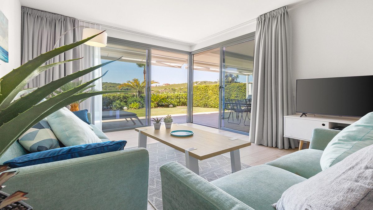 Este fantástico apartamento en planta baja se encuentra en la urbanización cerrada Casares Green, ofreciendo el equilibrio perfecto entre un estilo de vida moderno y la tranquilidad del campo andaluz.La vivienda cuenta con una luminosa cocina de concepto abierto junto al salón, que conecta con una amplia terraza privada y jardín. Este espacio exterior es ideal para disfrutar del estilo de vida mediterráneo, ya sea cenando al aire libre, recibiendo a amigos o simplemente relajándote al sol.El apartamento dispone de dos dormitorios dobles con armarios empotrados y dos baños de generosas dimensiones, uno de ellos en suite. Cada detalle ha sido cuidadosamente mantenido, por lo que la propiedad está lista para entrar a vivir. Entre sus comodidades destacan el aire acondicionado, persianas eléctricas y placas solares que aportan un toque sostenible. Además, incluye plaza de garaje y trastero.Para los amantes del golf, la ubicación no podría ser mejor. Rodeado de algunos de los mejores campos de golf de Europa, Casares Green es un auténtico paraíso. Más allá del golf, encontrarás playas vírgenes a pocos minutos y el encanto del pueblo de Casares en la sierra. A corta distancia se sitúan Estepona, Sotogrande, Marbella y Puerto Banús, con aeropuertos internacionales en Gibraltar y Málaga que hacen de esta propiedad una opción ideal tanto como residencia habitual como refugio vacacional.Ven a visitarlo conmigo.~