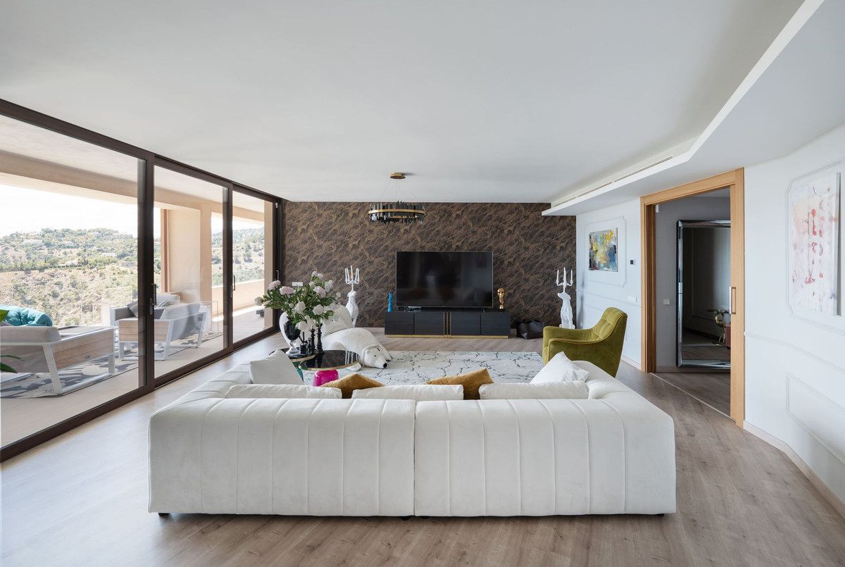 Apartamento de lujo de 4 dormitorios moderno y lujoso en venta en Olivos, la Quinta, BenahavísEste espectacular y único apartamento de lujo de 4 dormitorios, súper moderno, está ahora en venta en Olivos, la Quinta, Benahavís. El apartamento es excepcionalmente grande, ya que se compró sobre plano y combina dos apartamentos separados (uno con 3 dormitorios y otro con 2 dormitorios) en un amplio espacio habitable. Esta distribución única ofrece habitaciones de generosas dimensiones y una amplia terraza. Cuenta con 4 dormitorios y 4 baños, ofreciendo una fusión perfecta de naturaleza, tradición y diseño moderno. El apartamento cuenta con impresionantes vistas panorámicas de toda la región, incluyendo el mar, los campos de golf, las montañas y el pico de La Concha, y está orientado al sur y suroeste para maximizar la luz natural.El apartamento incluye acabados interiores y exteriores personalizados, un uso innovador del espacio con una integración perfecta entre el interior y el exterior, y una abundancia de luz natural. La amplia cocina de planta abierta cuenta con una isla de cocina, barra de desayuno y un área de comedor dedicada, complementada por una sala de estar integrada. Está equipada con comodidades modernas como aire acondicionado para refrigeración y calefacción, armarios empotrados y una cocina totalmente equipada con todos los electrodomésticos. El apartamento también incluye 3 plazas de aparcamiento subterráneo y 2 trasteros, y cuenta con materiales de alta calidad como suelos de cerámica, madera y mármol.Las áreas comunes de esta comunidad cerrada ofrecen seguridad las 24 horas, jardines sub-tropicales bellamente ajardinados y piscinas para adultos y niños. La comunidad y urbanización más amplia incluyen un hotel, restaurantes, tiendas, un campo de golf y una academia, un centro de bienestar con spa, un centro ecuestre, huertos y un lago que recrea un estilo de vida de playa en las montañas. Real de La Quinta es el primer proyecto en España en recibir el certificado BREEAM para la planificación de infraestructuras, destacando sus credenciales de sostenibilidad.Con una ubicación conveniente a solo 10 minutos de Puerto Banús, el apartamento se encuentra a poca distancia de tiendas, supermercados y colegios. Una carretera actualmente en construcción proporcionará pronto una conexión directa a Puerto Banús, mejorando la accesibilidad.~