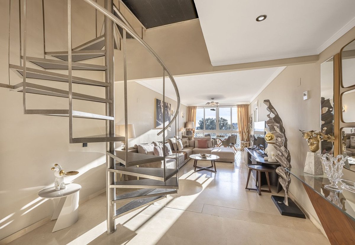 Bienvenido a Marbella.Imagine despertar cada mañana con la suave brisa del Mediterráneo acariciando su rostro y la promesa de un nuevo día en uno de los enclaves más exclusivos del mundo.Este lujoso dúplex, situado en el vibrante corazón de Puerto Banús, no es solo una propiedad: es un refugio de elegancia, serenidad y estilo.Desde el primer momento, su interior deslumbra con una decoración exquisita, donde cada detalle ha sido cuidadosamente elegido para crear una experiencia visual y sensorial única.Los amplios y luminosos espacios se abren naturalmente al exterior, permitiendo que la luz del sur inunde cada rincón.En la planta principal, la cocina independiente, totalmente equipada, es un espacio ideal tanto para disfrutar de la gastronomía como para compartir momentos especiales.Junto a ella, el salón ofrece una atmósfera de confort absoluto, perfecta para relajarse tras un día disfrutando del encanto de Marbella.En este mismo nivel, dos dormitorios garantizan descanso e intimidad:• Una suite principal con cama king size, baño privado y un acogedor balcón acristalado donde el silencio y la calma son protagonistas.• Un segundo dormitorio con dos camas individuales y baño completo, pensado para la comodidad de la familia o los invitados.Al subir la elegante escalera, se descubre el verdadero tesoro de la vivienda:una amplia suite principal con acceso directo a la terraza superior.Desde allí, las vistas al mar son un espectáculo cambiante que acompaña cada amanecer y cada atardecer.El solárium privado, con su rincón para el café y tumbonas, invita a disfrutar de la más absoluta tranquilidad.En esta planta se encuentra también un cuarto dormitorio con baño en suite, perfecto para huéspedes que buscan su propio espacio.Pero la magia no se limita al interior.El complejo residencial es una auténtica joya escondida en Puerto Banús: cuenta con seguridad 24 horas, jardines tropicales cuidados al detalle y cuatro piscinas donde el tiempo parece detenerse.Todo ha sido diseñado para ofrecer una experiencia de bienestar incomparable.Y, por supuesto, el entorno: a pocos pasos, las boutiques más exclusivas, los restaurantes gourmet y el puerto deportivo con sus emblemáticos yates.Todo lo que pueda desear está a su alcance, sin necesidad de utilizar el coche.Este apartamento no es solo una vivienda: es un estilo de vida, una historia que comienza cada vez que se abre la puerta.Un hogar donde el lujo se siente, la calma se respira y cada detalle invita al placer.Bienvenido a su nuevo hogar en el paraíso!~