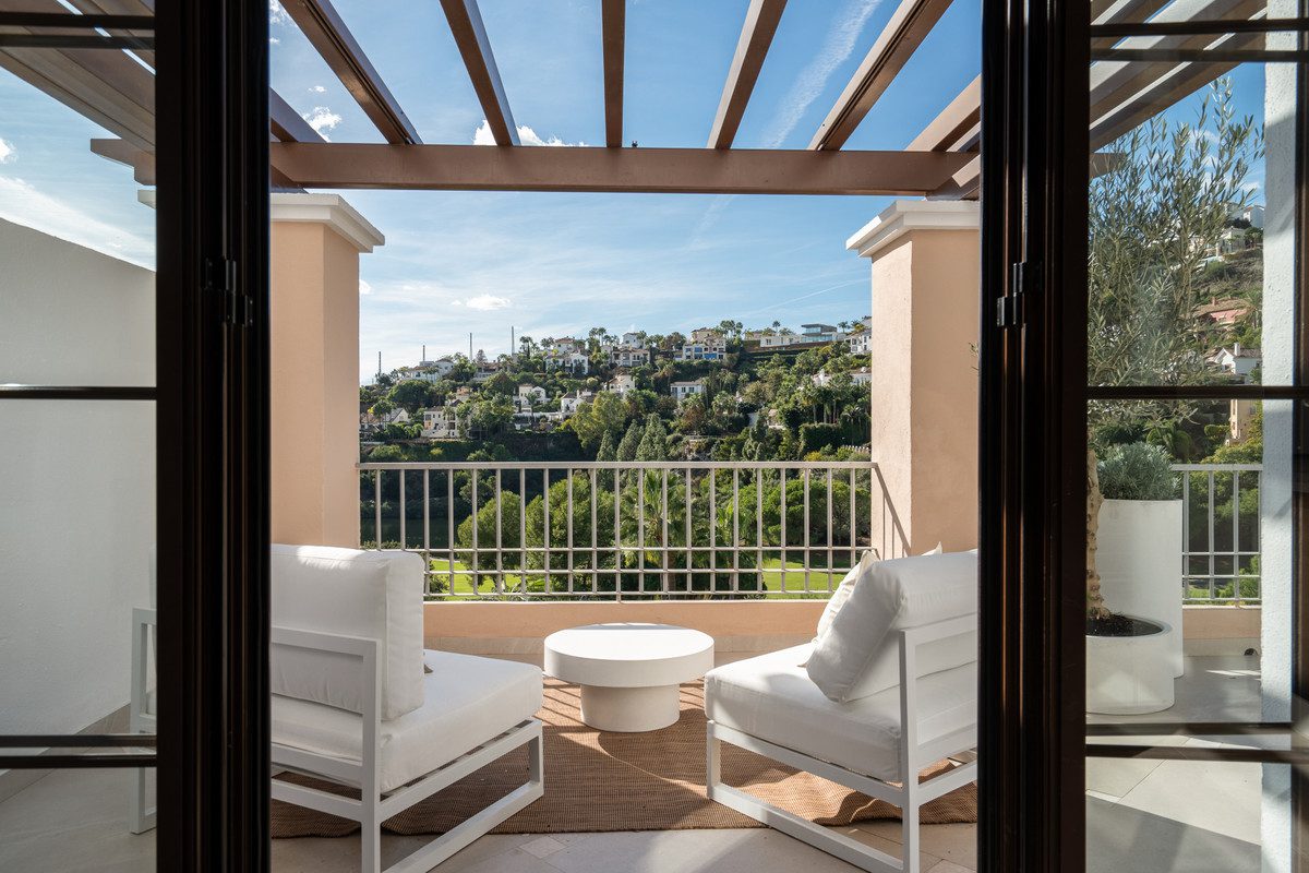 Descubra este impresionante ático de esquina en el codiciado La Torre, Los Arqueros, ahora totalmente renovado con elegantes acabados contemporáneos y refinada artesanía en todas partes. La cocina de planta abierta se conecta perfectamente con la espaciosa sala de estar, creando un ambiente lleno de luz que combina perfectamente la sofisticación y la comodidad, una transformación muy aprobada por Elliott James. Entre sus tres dormitorios y dos elegantes baños, uno se ha convertido en una oficina dedicada, ideal para empresarios o personas que prefieren un espacio de trabajo desde casa. Esta inteligente adaptación mejora la versatilidad de la propiedad manteniendo su sentido de calma y lujo.Grandes puertas de apertura llenan el interior con luz natural y marco vistas panorámicas de las montañas circundantes y campo de golf, permitiendo que la belleza de la naturaleza fluya sin esfuerzo interior. El resultado es un santuario serena y moderno que captura la esencia de la elegante Costa del Sol viviendo. Los residentes disfrutan de múltiples piscinas, jardines preciosos y aparcamiento subterráneo seguro con un trastero privado y acceso directo al ascensor. Con las comodidades de Los Halcones y el encanto de San Pedro a pocos minutos, este ático ofrece el equilibrio perfecto de comodidad, privacidad y vida refinada. Nota: el precio de pedido excluye todos los muebles. Un paquete de muebles separado está disponible, y los costos se pueden discutir con su asesor de ventas.~