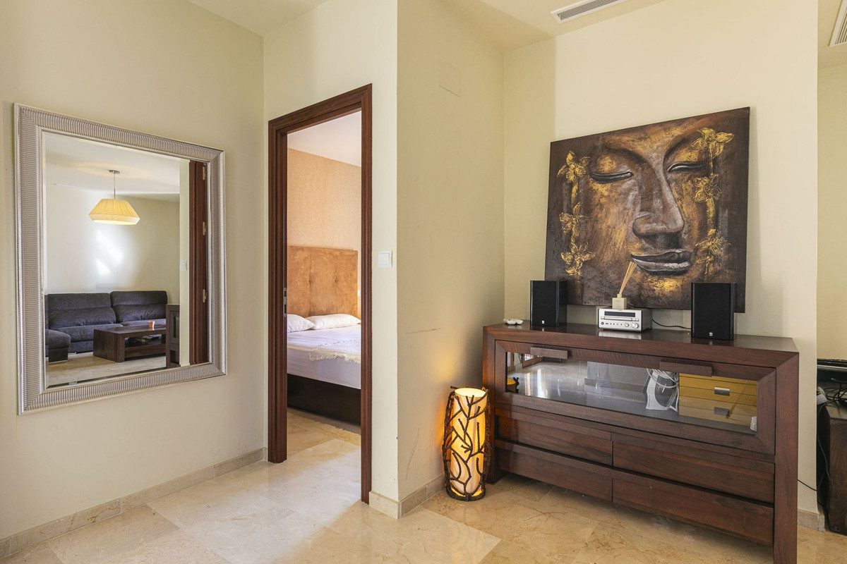 Ático en Nueva Andalucía, muy cerca del campo de golf Las Brisas.El apartamento fue renovado hace unos años con acabados de buena calidad.Está ubicado en una urbanización muy tranquila con muchos árboles, lo que da la sensación de estar en el campo.La comunidad cuenta con jardines muy amplios y dos piscinas.Además, hay un club comunitario con piscina cubierta climatizada, pequeño gimnasio y sauna.Y hay una pista de tenis dentro de la comunidad cerrada.Dos dormitorios y dos baños en suite, con sala de estar y cocina abierta que tiene acceso a una terraza con vistas al jardín.~