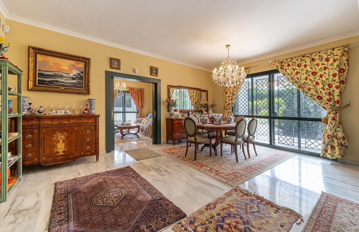 Villa de lujo en venta en Nagüeles, Marbella – Elegancia atemporal en la Milla de OroEnclavada en el corazón de la prestigiosa Milla de Oro, en la codiciada zona residencial de Nagüeles, esta magnífica villa representa la esencia del estilo de vida mediterráneo más exclusivo. Una propiedad de líneas clásicas y carácter refinado, que aúna sofisticación, privacidad y confort en una de las ubicaciones más privilegiadas de Marbella.Sobre una generosa parcela de 1.018 m², la villa despliega una imponente superficie construida de 682 m², distribuidos de forma impecable para satisfacer las expectativas del cliente más exigente. Cada estancia ha sido diseñada con un gusto exquisito, combinando materiales nobles como el mármol con una cuidada selección de mobiliario de alta gama.La residencia dispone de cuatro amplios dormitorios, dos de ellos con elegantes baños en suite, además de tres baños completos y un aseo de invitados. La zona de día ofrece una atmósfera serena y luminosa, con una acogedora sala de estar con chimenea, un comedor independiente y una cocina totalmente equipada, ideal tanto para el día a día como para el entretenimiento.En el exterior, la villa se abre a un entorno de paz y belleza natural, con un jardín perfectamente cuidado, una elegante zona de barbacoa y una piscina privada rodeada de rincones para el descanso, garantizando máxima privacidad en un entorno idílico.El inmueble incluye además un amplio sótano multifuncional, que puede transformarse en cine privado, bodega, gimnasio, sala de juegos o cualquier otra propuesta personalizada. Un garaje privado completa la oferta.A pocos minutos del centro de Marbella, de renombrados colegios internacionales, exclusivos campos de golf y del glamuroso estilo de vida de la Milla de Oro, esta propiedad es el refugio perfecto para quienes buscan un hogar de alta gama con potencial de reforma para adaptarse a su visión personal.~