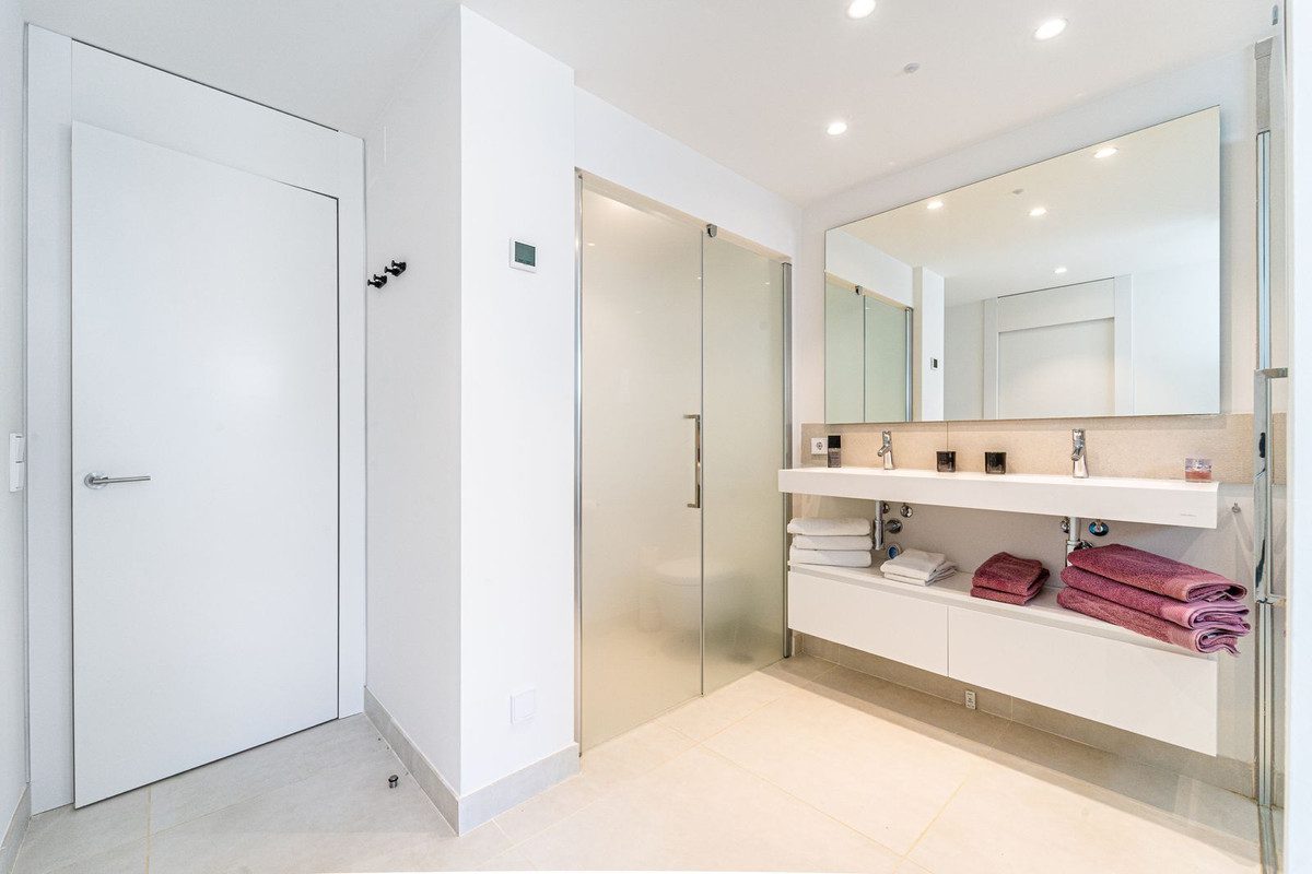 Apartamento de lujo con orientación oeste, en la exclusiva urbanización de Higuerón Oeste, con 3 dormitorios, 2 baños, amplio salón comedor, cocina americana totalmente amueblada y equipada con electrodomésticos Bosch incluyendo frigorífico americano y vinoteca, zona de lavandería con lavadora/secadora, gran terraza de 54m2 con vistas al jardín. Dormitorio principal con vestidor, baño ensuite abierto al dormitorio y acceso a una pequeña terraza de 5m2. Aire acondicionado frío y calor, videoportero, sistema domótico, armarios empotrados en todos los dormitorios y recibidor, toldos eléctricos en terraza principal y cortinas eléctricas en salón, preinstalación de alarma, suelo radiante en ambos baños. Incluye dos plazas de garaje y un trastero.~