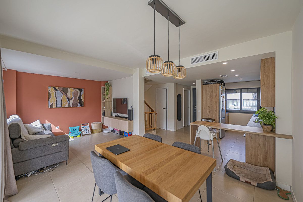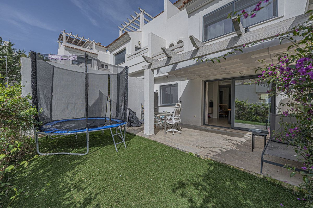 ELEGANTE CASA DE RECIENTE CONSTRUCCIÓN EN ATALAYAFantástica casa ubicada en la exclusiva zona de El Campanario (Atalaya), cerca de servicios, junto a los campos de golf de Atalaya y El Paraiso y muy próxima a Guadalmina y San Pedro de Álcantara.La propiedad está distribuida en varias plantas, dispone de un total de 3 dormitorios, dos cuartos de baño más aseo, salón con cocina abierta, terraza con jardín, solárium de unos 35m2 y sótano actualmente con zona de gimnasio y trastero.Establecido dentro de una urbanización cerrada con jardines y piscina comunitaria.Una propiedad ideal, para los clientes que quieran disfurtar de una acogedora casa lista para entrar a viri en una tranquila zona junto a todo tipo de servicios.~