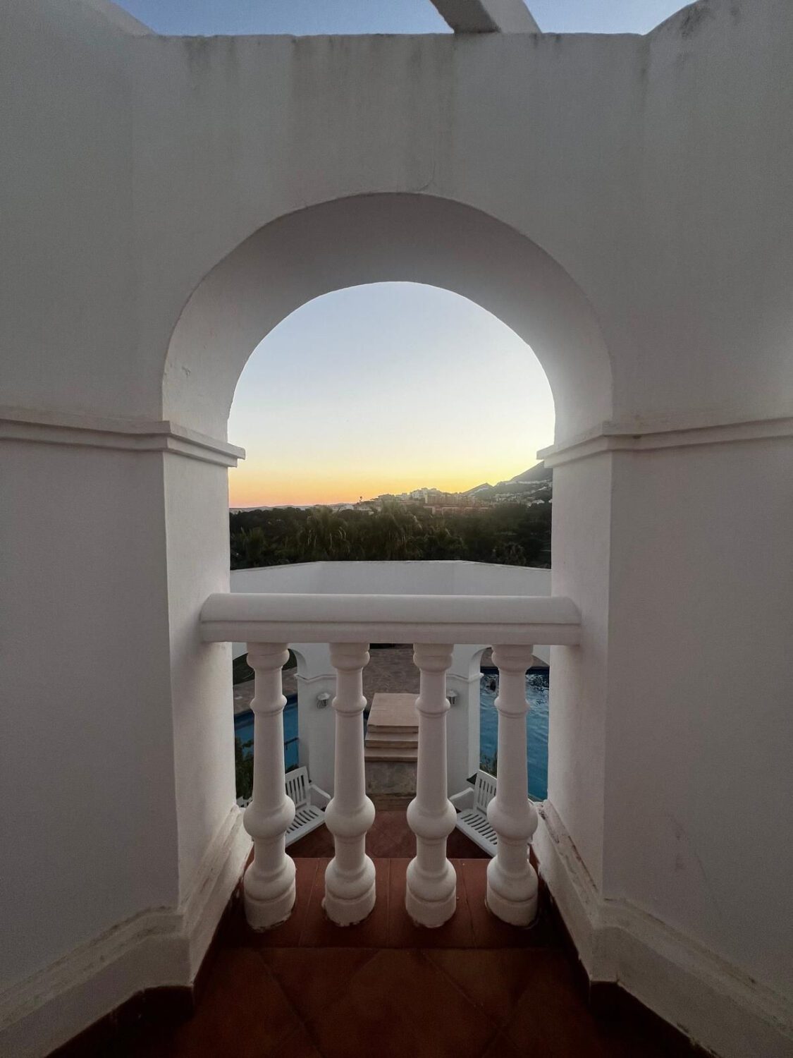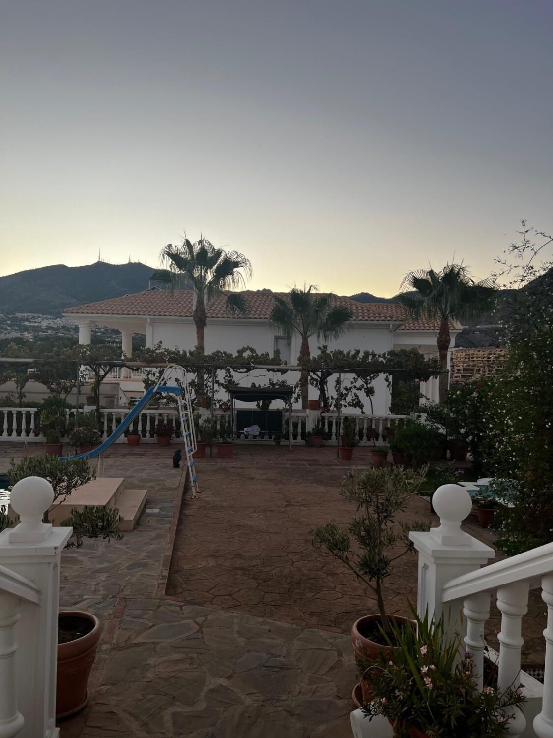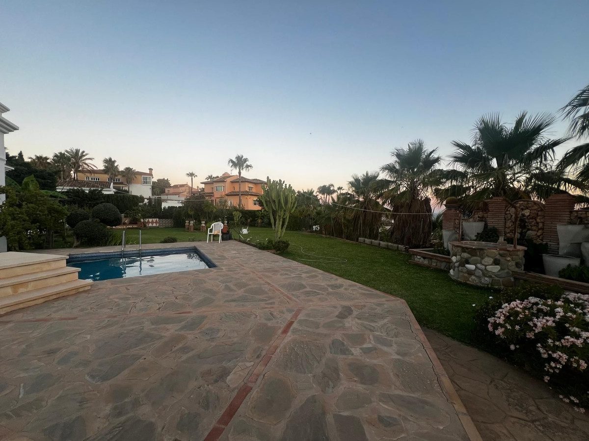 Villa mediterránea en Torre Quebrada, BenalmádenaEspectacular villa independiente de estilo andaluz, de líneas blancas y elegantes arcadas, situada en una de las zonas más exclusivas de Torre Quebrada. La propiedad destaca por su amplia piscina privada con tobogán, rodeada de una soleada terraza de piedra ideal para tomar el sol y disfrutar al aire libre.En la planta principal encontramos un gran porche cubierto con columnas y balaustradas, perfecto como zona chill-out o comedor de verano. En la planta alta, una amplia terraza perimetral con pérgolas ofrece múltiples rincones para relajarse y disfrutar del clima de la Costa del Sol.Rodeada de vegetación y macetas decorativas, la villa combina privacidad, amplitud y mucha luminosidad, convirtiéndola en una opción ideal tanto como residencia habitual como casa vacacional de lujo en Benalmádena. En inglés~