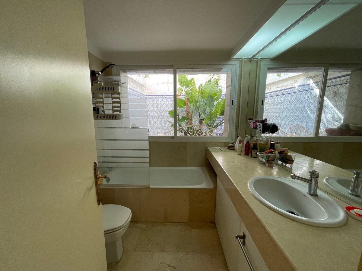 Exclusividad, confort y ubicación privilegiada en Marbella – Planta baja.Descubre esta elegante vivienda en planta baja situada en la prestigiosa urbanización , una de las zonas más codiciadas de Marbella. Esta propiedad ofrece el equilibrio perfecto entre lujo, privacidad y entorno natural, ideal tanto como residencia habitual como segunda vivienda.Características principales:3 dormitorios amplios, uno de ellos con baño en suite2 baños completos + 1 aseo de cortesíaEspaciosa zona de terrazas y patios, perfectos para disfrutar del clima mediterráneo durante todo el añoAcceso independiente que garantiza privacidad totalPiscina comunitaria y cuidados jardinesUrbanización cerrada y segura, rodeada de tranquilidadGracias a su excelente ubicación, estarás a solo unos minutos del centro de Marbella, playas, restaurantes y todos los servicios, además de contar con acceso directo a la A7, que conecta con el Aeropuerto de Málaga en apenas 35 minutos.¡Ven a conocer tu próximo hogar en Marbella!Características básicas715 m² construidos3 habitaciones3 bañosTerrazaSegunda mano/para reformarArmarios empotradosOrientación norte, sur, este, oesteConstruido en 1987Calefacción centralSolo interior de la vivienda adaptado para personas con movilidad reducidaEdificioBajo exteriorCon ascensorEquipamientoAire acondicionadoPiscinaJardín~