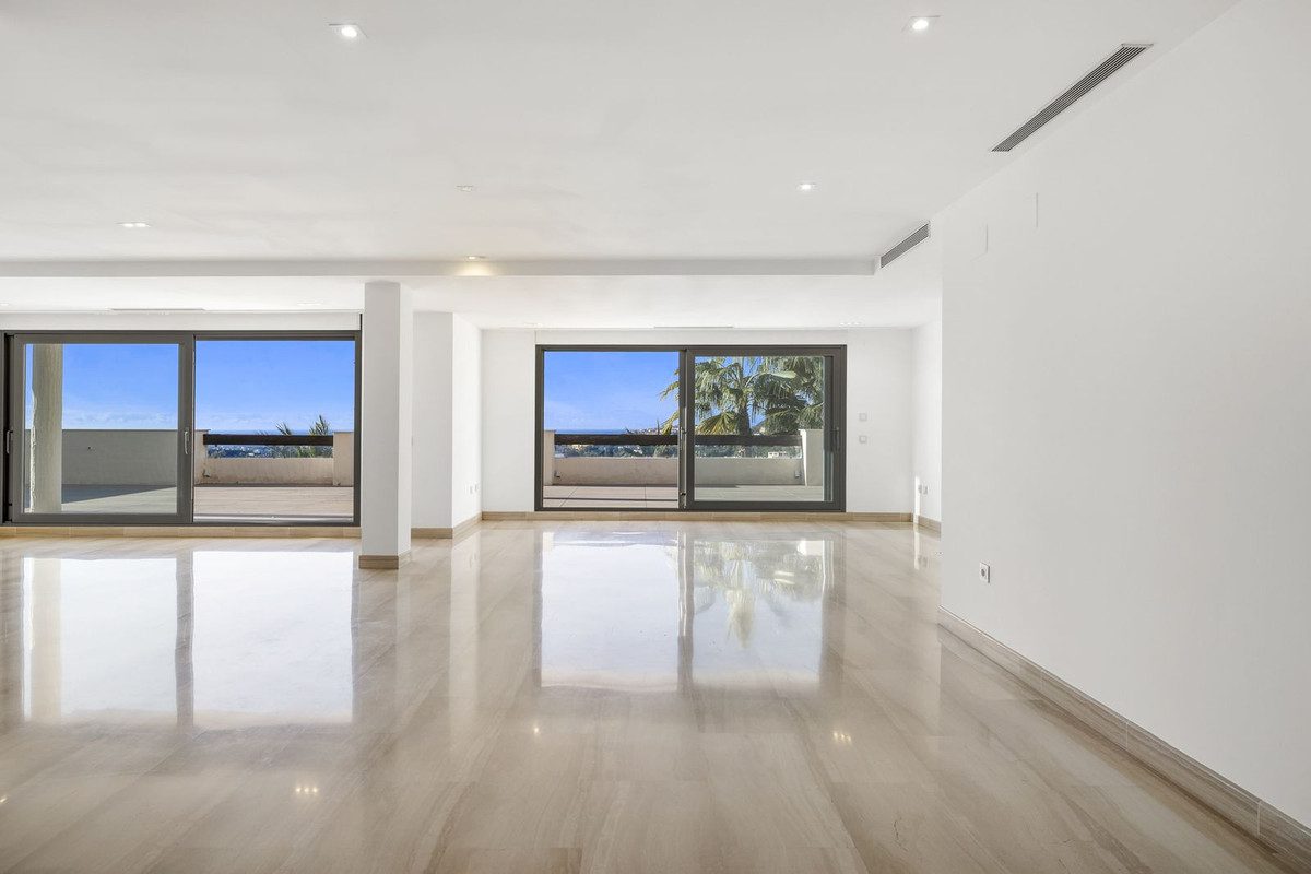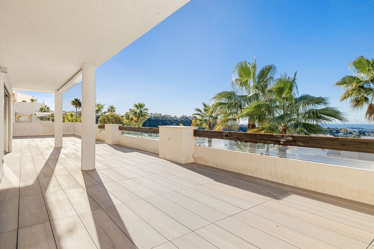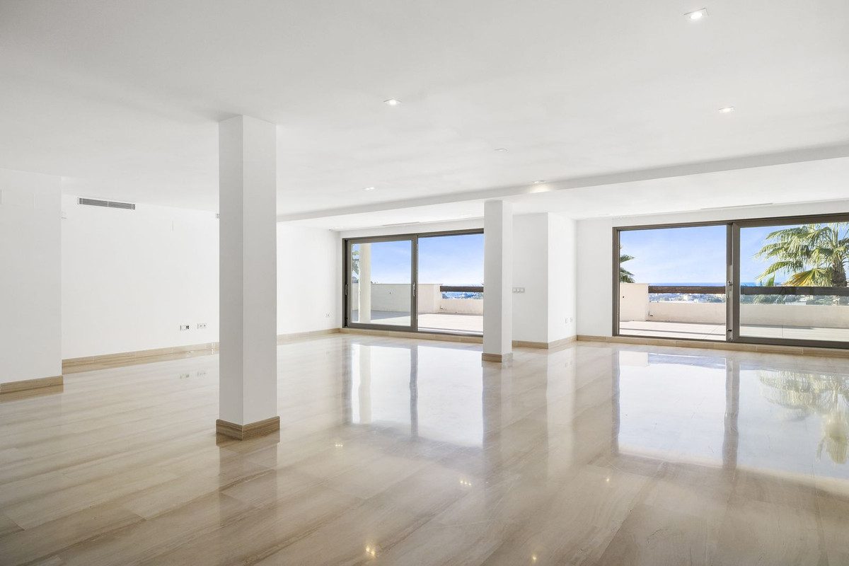 Spectacular very large 3 bedroom apartment in one of the most popular developments in the Benahavis area. A 2 bedroom and a 1 bedroom apartment have been joined together to this 200m2 apartment with 110m2 of terrace and stunning unobstructed views across the sea.The living dining room measures around 80m2 and offers the possibility of different sitting areas. The modern fully fitted kitchen with an adjecent laundry room is separated through a sliding door from the living area.The master suite with walk-in wardrobe has direct access to the terrace and is on the opposite side of the apartment as the guest bedroom area of which one is en suite and also has access to the terrace.The apartment comes with 2 parkings and 1 storages.There are beautifully maintained gardens and 2 pool areas.~