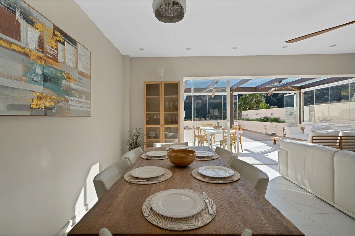 Esta preciosa casa adosada totalmente reformada se encuentra en primera línea de la codiciada comunidad de El Casar, a pocos pasos del pueblo de Benahavís, famoso por sus excelentes restaurantes y su encantador ambiente. La propiedad ha sido renovada con los más altos estándares, sin escatimar en gastos y utilizando materiales de primera calidad en todas partes.La amplia zona de estar diáfana y la moderna cocina cuentan con cortinas de cristal, lo que crea un espacio luminoso y amplio lleno de luz natural. Tanto desde el salón como desde la terraza se puede disfrutar de unas impresionantes vistas panorámicas.El Casar ofrece unas instalaciones excepcionales, que incluyen piscinas cubiertas y al aire libre, un gimnasio totalmente equipado y un spa. La comunidad está orientada a las familias, es segura e ideal como residencia permanente o como casa de vacaciones de alta calidad. Los bajos gastos de comunidad también la convierten en una opción atractiva en términos de costes de mantenimiento.Los servicios del pueblo, como un supermercado, una farmacia, un banco, tiendas y una gran variedad de restaurantes considerados los mejores de la costa, se encuentran a un paso. Se puede ir andando a dar paseos por la naturaleza, a un sendero junto al río y a piscinas naturales. Benahavís también es conocido por su excelente colegio local y por su oferta comunitaria, que incluye clases de español gratuitas para los residentes. A lo largo del año se celebran muchas fiestas, lo que contribuye a que sea un lugar perfecto para las familias.Situado a solo 10 minutos en coche de la costa y de la AP-7.~