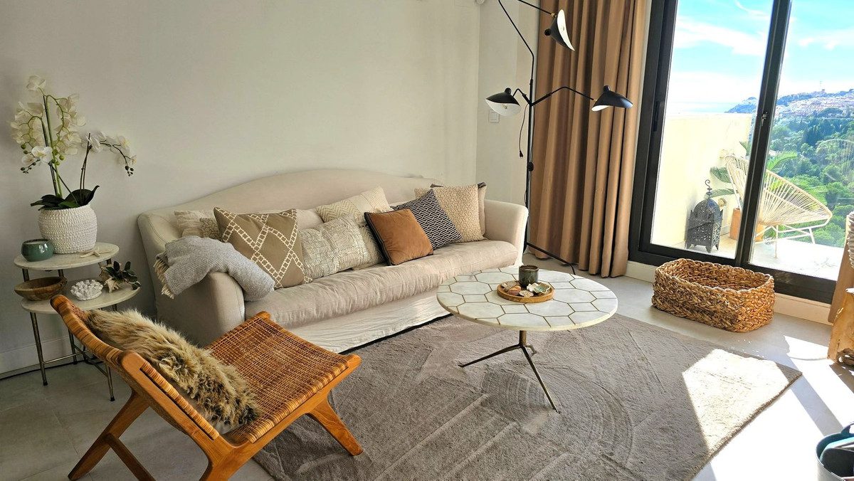 Este ático en Benalmádena está a la venta por 595.000 € y ofrece 84 m² de espacio interior distribuidos en dos dormitorios y dos baños, con acceso directo a un total de 71 m² de terrazas, incluyendo un solárium privado. El apartamento se vende completamente amueblado y disfruta de una orientación sur-oeste, ideal para contemplar las impresionantes vistas al mar Mediterráneo y a las montañas.Al entrar en este elegante ático en Horizonte, la primera sensación es la de amplitud, luminosidad y un diseño moderno que invita a relajarse desde el primer momento. La distribución está pensada para ofrecer un flujo natural entre las distintas estancias, creando un ambiente cómodo y práctico para el día a día. El salón se conecta directamente con la amplia terraza a través de grandes puertas correderas, generando una transición suave entre interior y exterior. Desde aquí, las vistas panorámicas al mar y a las montañas acompañan cada momento del día.El salón y el comedor forman el corazón social de la vivienda, donde las líneas limpias, los tonos neutros y los materiales contemporáneos crean un ambiente acogedor y sofisticado. La cocina abierta, equipada con materiales de alta calidad y soluciones modernas, se integra perfectamente con el estilo arquitectónico del conjunto residencial. Los amplios ventanales permiten la entrada de abundante luz natural, realzando la sensación de amplitud.Ambos dormitorios son espaciosos y han sido diseñados con atención al confort y la funcionalidad. El dormitorio principal cuenta con acceso directo a la terraza y un baño en suite, mientras que el segundo dormitorio se sitúa en una zona más independiente, proporcionando privacidad y versatilidad, ya sea para invitados, familiares o como despacho. El estado general del apartamento es excelente, y el hecho de que se venda completamente amueblado permite instalarse sin complicaciones.El solárium privado es, sin duda, uno de los espacios más especiales de la vivienda. Este refugio exclusivo permite disfrutar del clima mediterráneo con total privacidad, perfecto para tomar el sol, relajarse, cenar al aire libre o contemplar la puesta de sol. Con un total de 71 m² de terrazas, tendrás espacio más que suficiente para disfrutar plenamente de la vida al aire libre.La propiedad incluye dos plazas de aparcamiento y un trastero, añadiendo valor y comodidad al día a día. El residencial Horizonte, destaca por su diseño moderno, zonas comunes bien cuidadas y una ubicación que combina tranquilidad con proximidad a servicios, playas y accesos de transporte. Es una opción ideal tanto como vivienda habitual como para uso vacacional.~