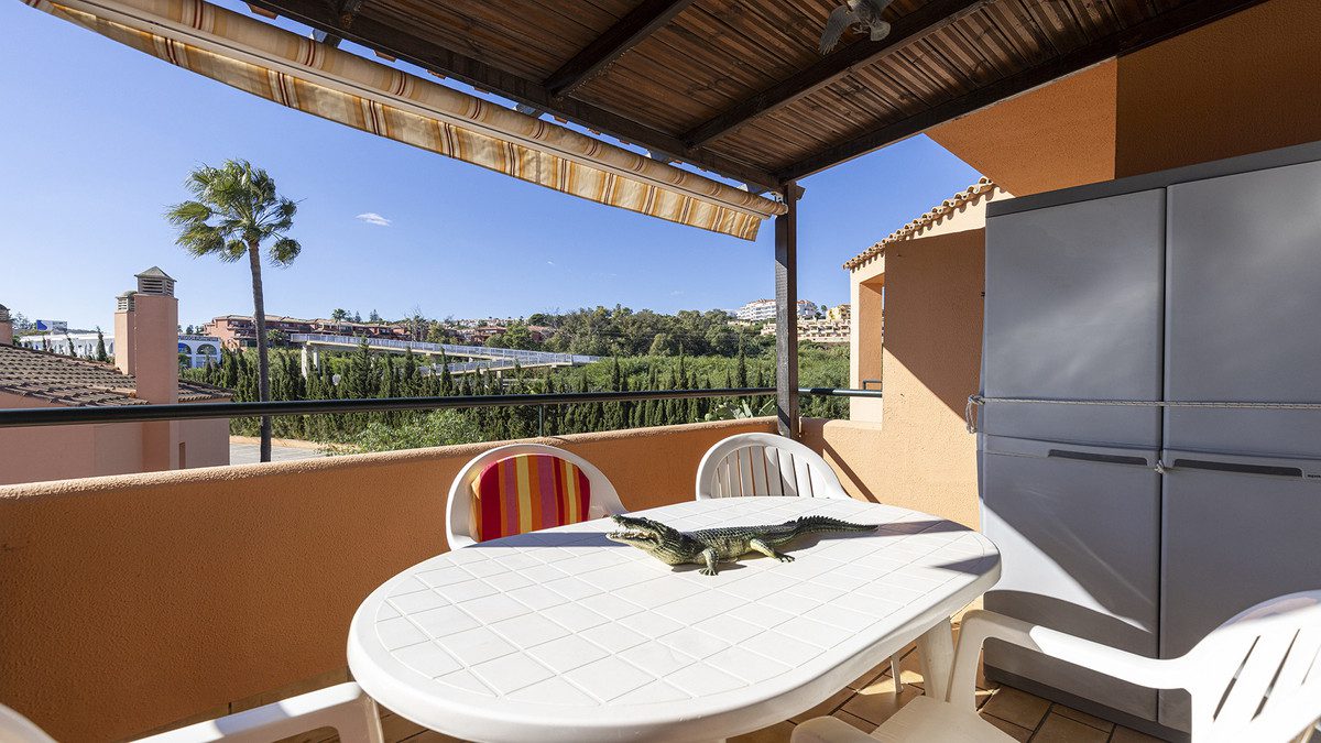 Cómodo y luminoso apartamento de un dormitorio en la urbanización Manilva Beach, situado a treinta escalones de la entrada y con vistas directas a la piscina y a los bonitos jardines comunitarios. Manilva Beach es una comunidad consolidada en primera línea de playa que cuenta con tres piscinas, pista de tenis, pista de pádel y una pequeña zona de parque, ideal tanto para vacaciones como para vivir durante todo el año.Al entrar en la vivienda se accede directamente al salón comedor. A la derecha hay un balcón muy agradable con vistas abiertas a las piscinas y jardines, con espacio suficiente para una mesa de cuatro a seis personas. La propiedad también dispone de cocina independiente, un dormitorio amplio y un baño.La ubicación es excelente con un paseo llano por el paseo marítimo hasta El Castillo y el puerto de La Duquesa. Gibraltar queda a unos veinticinco minutos en coche y el aeropuerto de Málaga a menos de una hora. Para un día de compras o una escapada, Marbella está a solo veinte minutos.~