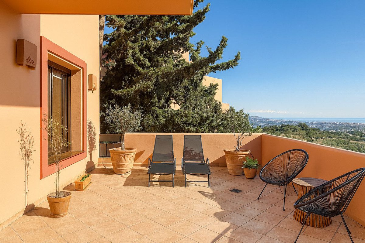 Este es un luminoso y bien cuidado apartamento de 3 dormitorios en La Mairena, que ofrece una excelente combinación de espacio, vistas y comodidad.Tiene 144 m² y un total de 52 m² de terrazas divididas en dos zonas: la terraza delantera cuenta con vistas abiertas al mar, mientras que la terraza trasera da directamente a la montaña y está completamente cubierta, lo que permite disfrutarla durante todo el año. Parte de la terraza delantera también está cubierta.En el interior, el apartamento cuenta con un luminoso salón con chimenea, una cocina totalmente equipada y recién reformada en agosto de 2024, tres amplios dormitorios, dos baños (uno de ellos en suite) y suelo radiante en ambos baños.Se encuentra en la primera planta de un edificio bien mantenido del año 2001 con ascensor.La propiedad se vende completamente amueblada e incluye una plaza de aparcamiento subterráneo.La comunidad ofrece una piscina compartida con bonitas vistas a la montaña.La Mairena es conocida por su entorno tranquilo, rodeado de naturaleza, ligeramente por encima de Elviria, lo que aporta aire más limpio, privacidad y vistas impresionantes, y a la vez está a solo un corto trayecto en coche de la costa, servicios, colegios y playas.Es una excelente opción si buscas más espacio y tranquilidad sin estar lejos de todo.~