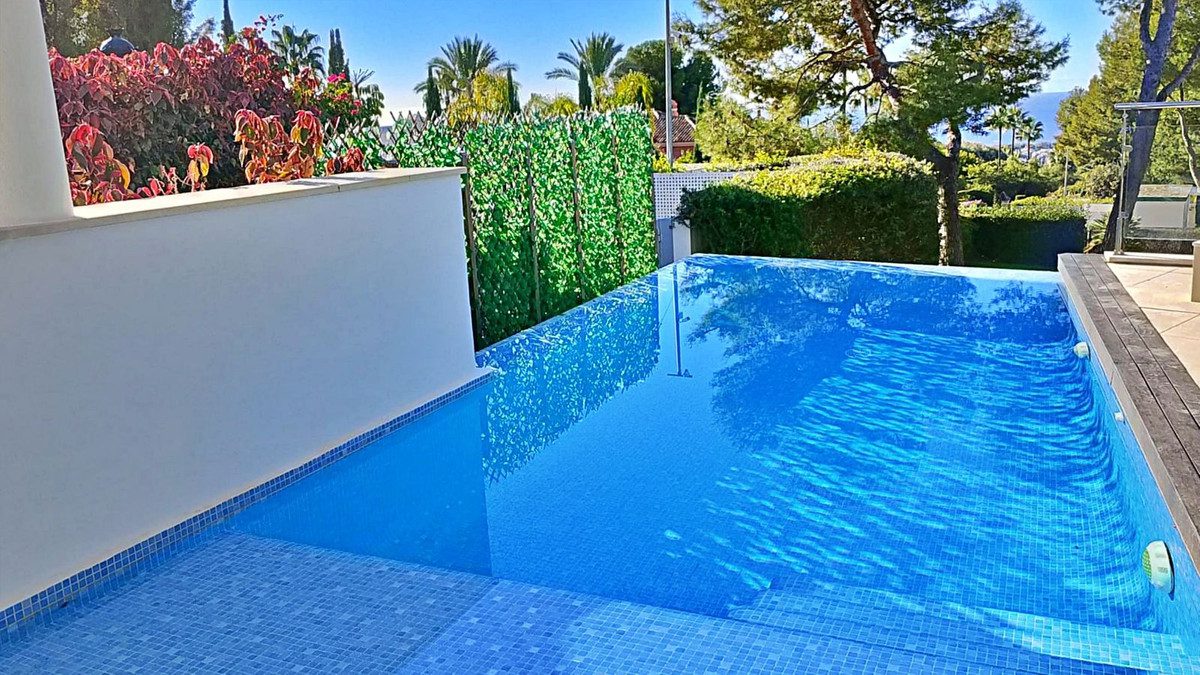 Elegante Villa Esquinera en Meisho Hills, Sierra Blanca, Marbella.Esta exclusiva y privada villa cuenta con 4 niveles. Dispone de un amplio salón, cocina, 4 dormitorios en suite con sus respectivos baños y un pequeño estudio con cocina americana y ducha independiente.Ubicada en la prestigiosa zona de Meisho Hills, en Sierra Blanca, Marbella, esta elegante villa de esquina ofrece una combinación excepcional de lujo, confort y vistas panorámicas.La zona principal de estar se abre a una amplia terraza con piscina privada y espectaculares vistas al mar. En esta planta se encuentra también un cómodo dormitorio con baño en suite, ideal para invitados o familiares.En la primera planta, la suite principal presume de impresionantes vistas al mar y al Peñón de Gibraltar, complementadas por un lujoso baño con jacuzzi, ducha y doble lavabo. Dos dormitorios adicionales, cada uno con su propio baño en suite, completan este nivel.La planta ático revela una espectacular terraza con vistas panorámicas a la montaña de La Concha, al mar Mediterráneo y al entorno natural, perfecta para relajarse o disfrutar de reuniones al aire libre.Entre sus características adicionales destacan un ascensor privado, tres plazas de aparcamiento subterráneo y un amplio trastero.Dentro de la comunidad cerrada, los residentes disfrutan de acceso exclusivo a tres spas con piscina interior climatizada, sauna, baño turco y gimnasio. El complejo también ofrece dos piscinas exteriores, jardines paisajísticos y seguridad las 24 horas para una total tranquilidad.Colindando con un parque natural y los pinares protegidos de Nagüeles, esta residencia se encuentra a pocos minutos del centro de Marbella, Puerto Banús y varios campos de golf de primer nivel. Su posición elevada en Sierra Blanca garantiza inigualables vistas al mar y a la montaña, convirtiéndola en una de las direcciones más codiciadas del Mediterráneo español.Este desarrollo galardonado ha recibido reconocimiento internacional, incluyendo los premios B.I.D. International Quality Star Awards en Londres y París, así como los Bentley International Property Awards por Mejor Arquitectura y Mejor Proyecto.Características Destacadas:Ubicación privilegiada en Sierra Blanca, Marbella4 niveles con ascensor privadoAmplia zona de estar con vistas al marGran terraza con piscina privadaSuite principal con jacuzzi y vistas panorámicas a GibraltarTres dormitorios adicionales en suiteTerraza en el ático con vistas a la montaña y al marTres garajes subterráneos y amplio trasteroAcceso a tres spas, piscina interior climatizada, sauna, baño turco y gimnasioDos piscinas exteriores y jardines paisajísticosSeguridad 24 horas en comunidad cerradaArquitectura y diseño galardonados~