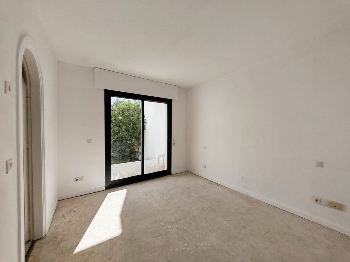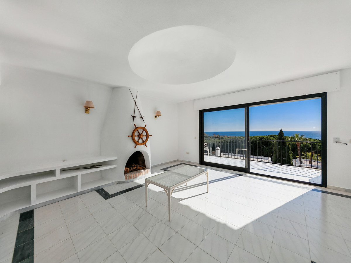 Adosado en venta en Cabopino, Marbella con 2 dormitorios, 2 baños, 2 baños en suite y 1 aseo, con piscina comunitaria y jardín privado. Respecto a las dimensiones, la propiedad presenta 123 m² construidos, 175 m² de parcela y 30 m² de terraza. Tiene las siguientes características servicios cercanos, aire acondicionado, chimenea, aseo para invitados, terraza privada, vistas al mar, terraza cubierta, vistas panorámicas, sin amueblar, cerca de playa / mar, cerca del golf, terraza descubierta, puertas de cristal, balcón, para reformar y tiendas cerca.~