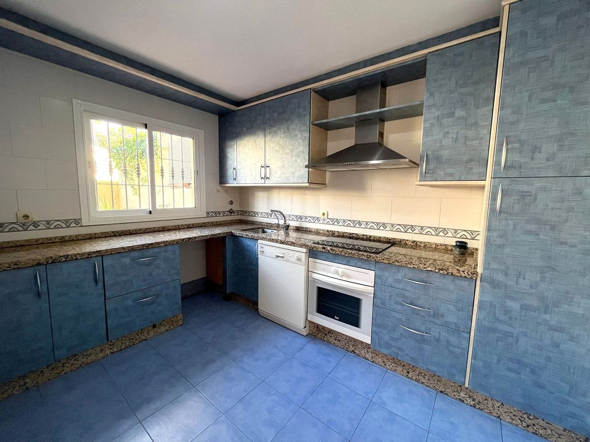 Acogedora casa adosada en el consolidado conjunto residencial quot;Balcones del Seghersquot;, ubicada en la urbanización Puerto de Estepona (zona Seghers), una de las áreas más demandadas de Estepona por su tranquilidad, proximidad al mar y fácil acceso al puerto deportivo y al centro.La vivienda, de estilo adosado y con mucho encanto, se distribuye en dos plantas sobre rasante, además de una amplia azotea/terraza transitable, y cuenta con un agradable jardín privativo de aproximadamente 52,70 m², ideal para disfrutar del clima de la Costa del Sol todo el año.DistribuciónPlanta baja (58 m² construidos aprox., incluyendo porche):Acceso desde la zona común a través de un jardín delantero y un porche cubierto.Cocina independiente.Aseo de cortesía.Salón–estar–comedor con chimenea, muy acogedor, con salida directa a un porche exterior orientado al jardín posterior, perfecto como zona de comedor de verano o área chill-out.Planta alta (57 m² construidos aprox., incluyendo terraza):Distribuidor que da acceso a:Tres dormitorios.Cuarto de baño completo.Uno de los dormitorios principales cuenta con un baño en suite, ofreciendo mayor privacidad y comodidad.El segundo dormitorio dispone de una terraza exterior privada, aportando luz natural y ventilación cruzada.Cubierta/azotea:Acceso mediante la misma escalera interior hasta la cubierta habilitada como terraza transitable, un espacio con gran potencial como solárium, zona de barbacoa o mirador.Esta propiedad es ideal tanto como residencia habitual como vivienda vacacional, por su ubicación en una de las urbanizaciones más emblemáticas de Seghers, su distribución familiar con tres dormitorios y su atractivo espacio exterior privado (jardín delantero, jardín trasero, terrazas y azotea).~