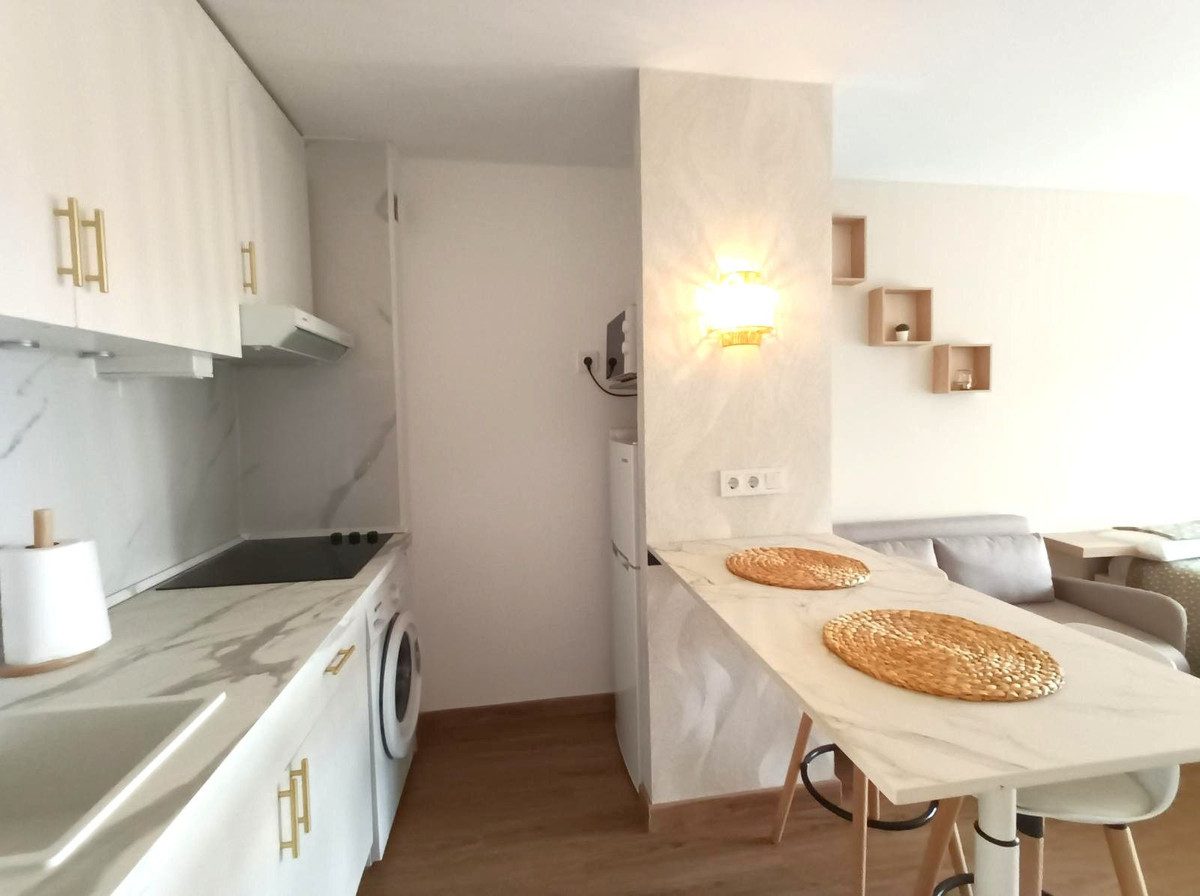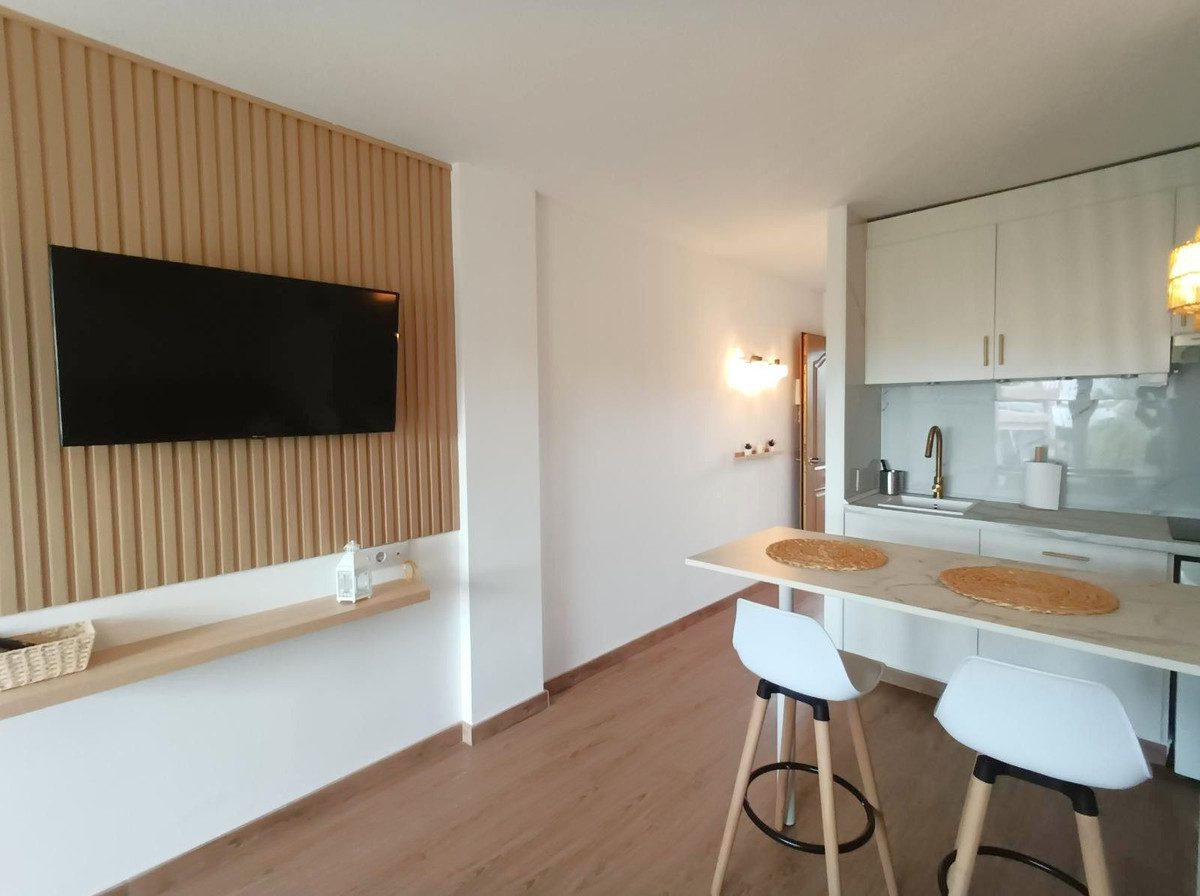 Estudio recién renovado a solo 10 minutos a pie de la playa y ideal para alquileres de corta estancia.La propiedad cuenta con una cocina y un baño modernos, así como una terraza privada con agradables vistas a la calle y a los jardines.Ubicada en la primera planta, la urbanización ofrece excelentes instalaciones comunitarias, incluyendo piscina, jardines y pistas de tenis.Situado cerca de tiendas y restaurantes, con una parada de autobús a solo 5 minutos a pie y el Riviera Sport Club a 5 minutos en coche.Aparcamiento en la calle disponible.~