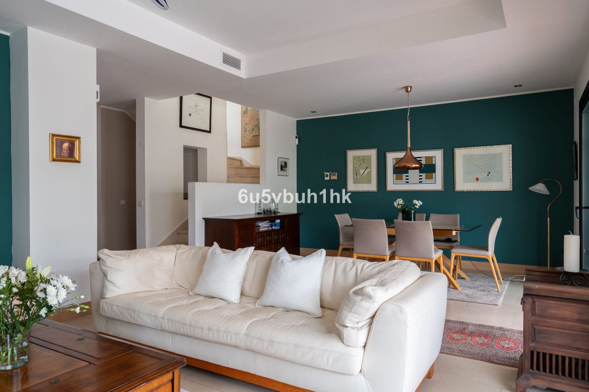 Ubicada en el encantador corazón de Benalmádena Pueblo, esta elegante casa pareada de 285 m² combina a la perfección comodidad, amplitud y vistas inolvidables.Entra en un acogedor salón con chimenea, un luminoso comedor y una amplia cocina, ideales para la vida familiar y recibir invitados. En la planta superior encontrarás tres cómodos dormitorios con armarios empotrados del suelo al techo, dos amplios baños y una terraza. En la planta principal hay además un aseo de invitados.La vivienda ofrece un excepcional estilo de vida al aire libre con dos amplias terrazas, un gran patio y 110 m² de jardín privado. Relájate junto a tu piscina privada mientras disfrutas de las tranquilas vistas a la montaña y al Castillo Colomares. Desde la terraza frontal y el dormitorio podrás contemplar también el mar.Entre las características adicionales se incluyen un gran sótano multifuncional con luz natural, un amplio cuarto de lavandería, trastero y aparcamiento cubierto para dos coches.Una hermosa combinación de tranquilidad, estilo y encanto andaluz — la casa está esperando a sus nuevos propietarios.Un hogar que lo tiene todo. ¡Contáctanos para una visita!~