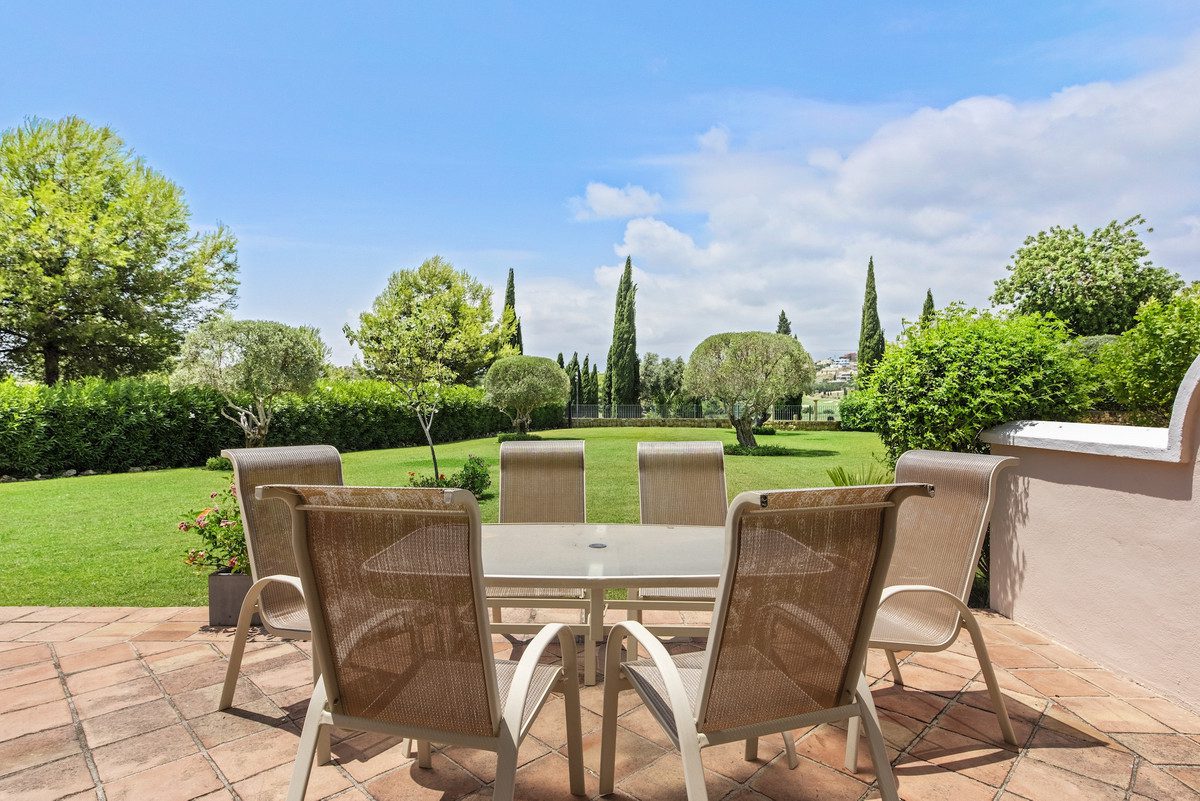 Un apartamento en planta baja verdaderamente especial, que se siente como una finca privada gracias a sus amplias terrazas que se abren directamente a los exuberantes jardines, creando una excepcional sensación de privacidad, amplitud y conexión con la naturaleza.En el interior, el luminoso salón-comedor de planta abierta fluye con naturalidad hacia el exterior, creando un ambiente perfecto para disfrutar del estilo de vida mediterráneo durante todo el año. La vivienda cuenta con una espaciosa suite principal con un elegante baño en suite, con doble lavabo, bañera y ducha independiente, una cocina totalmente equipada y un aseo de invitados. Tanto el salón como el dormitorio principal tienen acceso directo a la terraza y los jardines.Ubicado dentro de El Lago de Los Flamingos, una urbanización íntima y exclusiva compuesta por tan solo 32 apartamentos de lujo en primera línea de golf, esta propiedad destaca por su calidad atemporal y su impecable nivel de acabado. Situado frente al hoyo 3 del campo de golf Los Flamingos, el complejo está rodeado de jardines de inspiración toscana, con robles, cipreses, flores de colores y vistas serenas al lago y al campo de golf.Diseñado con los mejores materiales, El Lago ofrece un nivel de elegancia y calidad constructiva que rara vez se encuentra hoy en día. A poca distancia a pie del icónico hotel de 6 estrellas Villa Padierna Palace y ubicado en una tranquila calle sin salida, es un auténtico refugio de tranquilidad y sofisticación.Se vende completamente amueblado e incluye una plaza de garaje subterránea y un trastero. Un apartamento que combina a la perfección la elegancia clásica, el confort superior y la esencia del estilo de vida sofisticado de Marbella.~