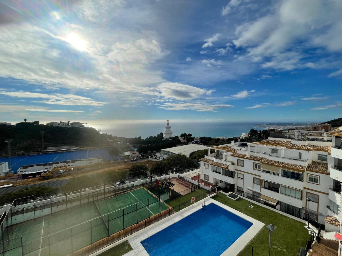 Descubre este espectacular piso en una de las ubicaciones más codiciadas de Benalmádena Pueblo, frente a la icónica Estupa Budista. Con orientación sur, disfruta de vistas maravillosas al mar Mediterráneo y un entorno tranquilo y privilegiado.Situado en la tercera planta de un conjunto residencial cerrado, cuenta con 3 dormitorios con armarios empotrados, 2 cuartos baños uno de ellos en suite, lavadero cerrado, cocina abierta al salón perfecto para disfrutar de la luz y el espacio con salida a una coqueta terraza donde disfrutar de una espectaculares vistas. El conjunto residencial ofrece excelentes servicios: una pista de pádel para los amantes del deporte, piscina comunitaria ideal para relajarse, y un jardín infantil seguro para los más pequeños. Además, incluye 2 plazas de garaje y trastero para tu tranquilidad.Ubicado frente a la Estupa Budista, a pocos minutos de comercios, restaurantes y servicios, con fácil acceso a la costa y a la autovía, playas y rutas de senderismo. Ideal para familias que buscan comodidad y tranquilidad, o para una inversión segura en una zona con gran proyección.¿Interesado? Contacte con nosotros para más información o para concertar una visita. ¡No te pierdas esta oportunidad única!Su inmobiliaria de confianza en la Costa del Sol.Le informamos que nuestros honorarios de agencia ya están incluidos en el precio de venta, por lo que no tendrá que pagar gastos de gestión ni de asesoramiento inmobiliario.En cumplimiento del Decreto 218/2005 de la Junta de Andalucía, de 11 de octubre, le informamos que los gastos notariales, registrales, de transmisión patrimonial (ITP) y demás gastos inherentes a la venta no están incluidos en el precio.La información proporcionada es solo orientativa, no vinculante y no tiene valor contractual. La oferta está sujeta a errores, cambios de precio, disponibilidad y/o retirada del mercado sin previo aviso. Esta información puede haber sido modificada, pero aún no se ha incorporado. Le sugerimos que contacte con la empresa para obtener la información más reciente y/o confirmar la información aquí proporcionada.~