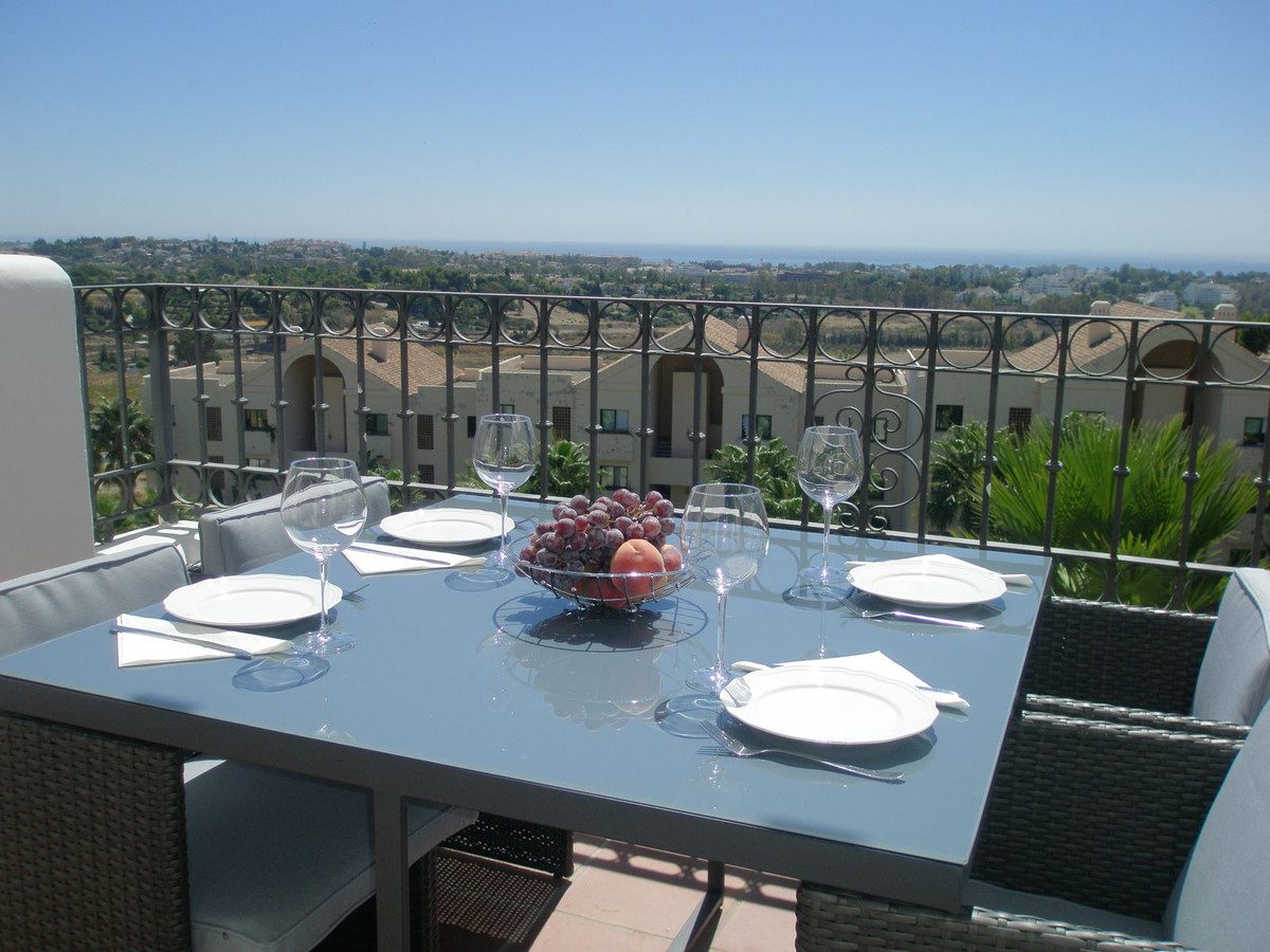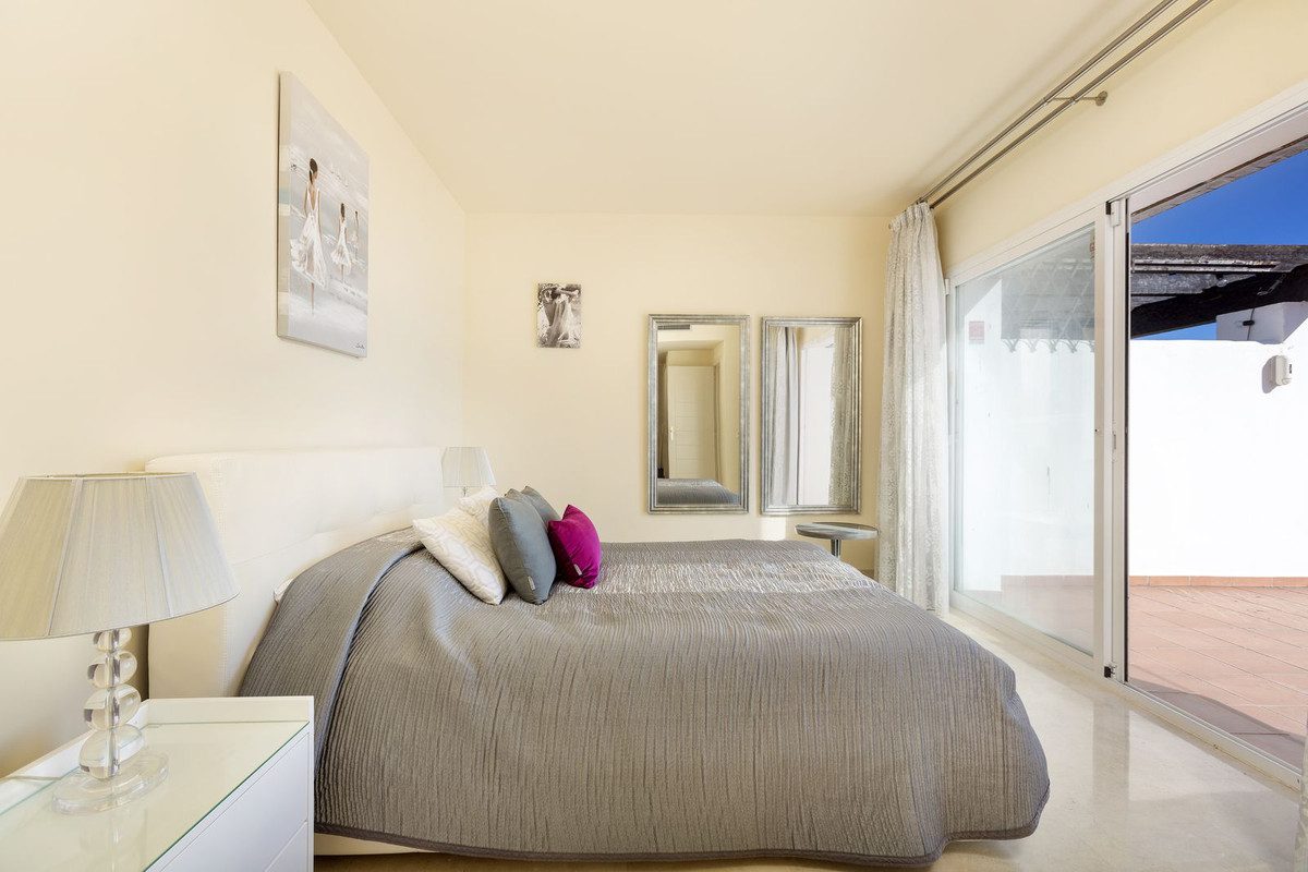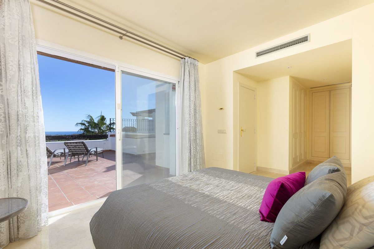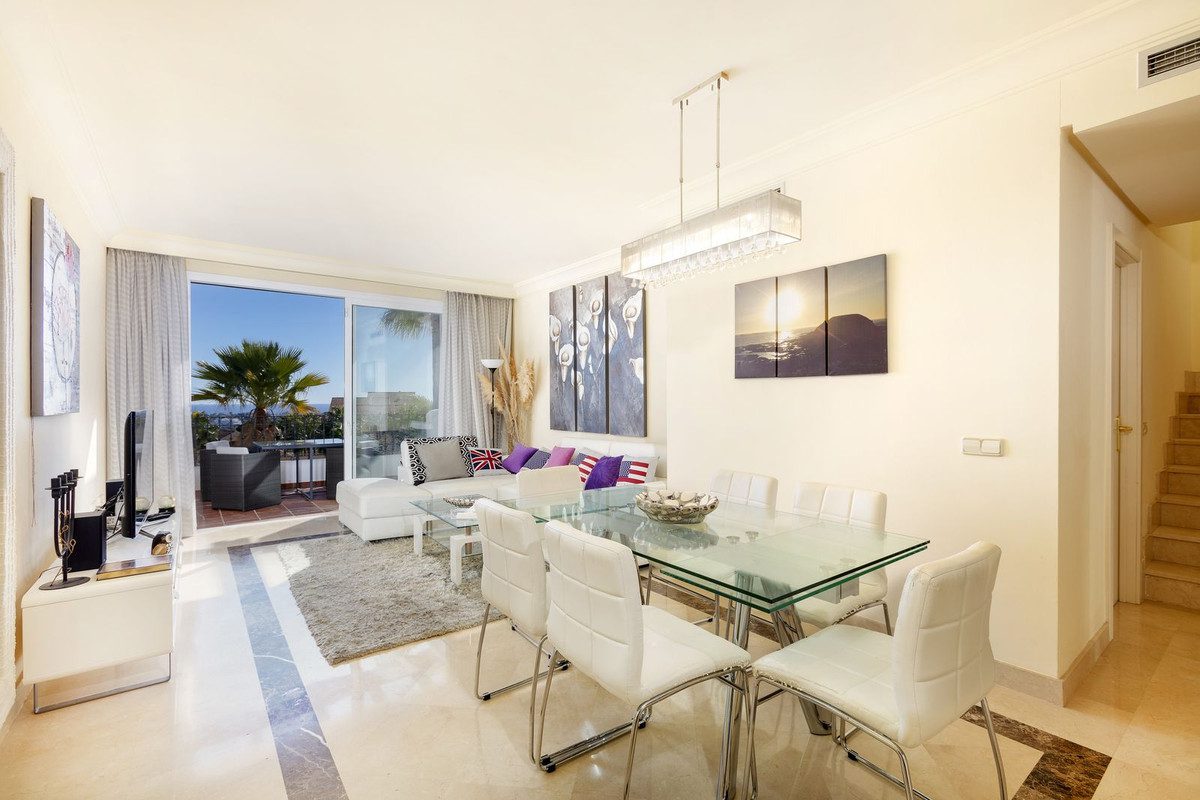 Hermoso ático dúplex ubicado en Atalaya que ofrece impresionantes vistas panorámicas del Mediterráneo y de la montaña La Concha. Situado a solo unos minutos a pie de la escuela privada local, un supermercado, un café orgánico y el Atalaya Golf Club, mientras que está a solo 10 minutos en coche de la playa y 15 minutos de Puerto Banús, esta propiedad se trata de conveniencia. Situado en una comunidad cerrada y segura de solo 107 apartamentos de lujo, se garantiza exclusividad y privacidad. Hay 28.000 m2 de jardines tropicales que se mantienen meticulosamente y proporcionan un entorno de vida tranquilo y natural. Hay dos grandes piscinas que ofrecen bonitas vistas para disfrutar mientras nadas, además de un gimnasio totalmente equipado. La propiedad está distribuida perfectamente con la planta inferior que cuenta con una gran cocina y lavadero, una amplia sala de estar y comedor que dan a una hermosa terraza con vistas al mar. También hay dos baños (uno en suite) en esta planta y dos grandes dormitorios, uno de los cuales da a la terraza. Arriba hay un gran dormitorio principal (con baño) que da a un solárium muy grande con vistas gloriosas al mar y las montañas y también cuenta con un gran jacuzzi – ¡El lugar perfecto para relajarse y descansar en la cima del mundo! Esta propiedad no tiene vistas desde fuera y es perfecta para aquellos clientes exigentes que buscan máxima privacidad.Además, la propiedad cuenta con dos plazas de aparcamiento grandes en el garaje subterráneo privado, además de dos grandes trasteros, lo cual es un verdadero beneficio.Al formar parte del municipio ultra exclusivo de Benahavís, los propietarios pueden disfrutar de privilegios como clases de español gratuitas, excelente escuela pública, entrada gratuita a partidos del Málaga CF ¡y más!¡Esta impresionante propiedad realmente debe ser visitada para ser apreciada en su totalidad!~
