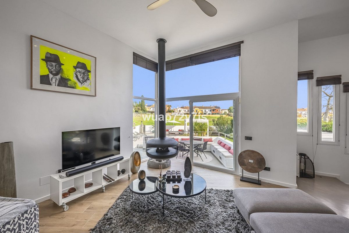 Elegante villa renovada con piscina privada y vistas abiertas al verdeEn la tranquila y verde urbanización Valle del Sol, en la zona de San Pedro de Alcántara / Marbella, se encuentra una casa que combina armoniosamente la privacidad y la tranquilidad con la comodidad de una infraestructura desarrollada. En las inmediaciones hay colegios internacionales, campos de golf, tiendas y restaurantes, y a solo unos minutos se encuentran San Pedro y la costa. La casa fue renovada en 2015, lo que permitió actualizarla y adaptarla a los estándares modernos de confort, conservando al mismo tiempo su carácter arquitectónico.La casa se descubre poco a poco. Al entrar, se encuentra en un pequeño pasillo que establece una lógica distribución del espacio. A la derecha se encuentra el dormitorio principal con baño integrado y vestidor, una zona cómoda y privada en la planta principal de la casa.A continuación, se accede a una luminosa cocina de tipo abierto con zona de comedor, ideal para la vida cotidiana y para recibir invitados. Unos pocos escalones más abajo conducen a un espectacular salón con techos muy altos y grandes ventanas panorámicas que llenan el interior de luz natural. El elemento central del salón es una chimenea de diseño que crea una atmósfera especial de comodidad. La casa cuenta con persianas eléctricas que garantizan el confort y la privacidad.Desde el salón, bajando unos cuantos escalones más, se llega a otro nivel, donde se encuentran dos dormitorios con baños, así como un espacio adicional que puede utilizarse como estudio, oficina o reconvertirse en una habitación independiente.La casa está situada en una gran parcela con piscina privada y vistas abiertas a una zona verde, sin edificios densos delante de la casa, lo que crea una sensación de amplitud y tranquilidad. A la casa se le ha añadido una habitación adicional con entrada independiente, que se puede utilizar como habitación de invitados o despacho, o bien, si se desea, se puede unir al salón, aumentando así el espacio habitable principal. En la parcela hay un gimnasio 50 m² independiente.La casa también cuenta con un sótano técnico adicional, situado en la parcela y completamente oculto bajo tierra, con espacio suficiente para guardar maletas, artículos de temporada y otros objetos.Hay aparcamiento y cochera (carport) para el coche.Esta casa es un espacio bien pensado para una vida cómoda, tranquila y de calidad en Marbella, donde la arquitectura, la luz, la ubicación y el estado renovado se encuentran en perfecto equilibrio.~