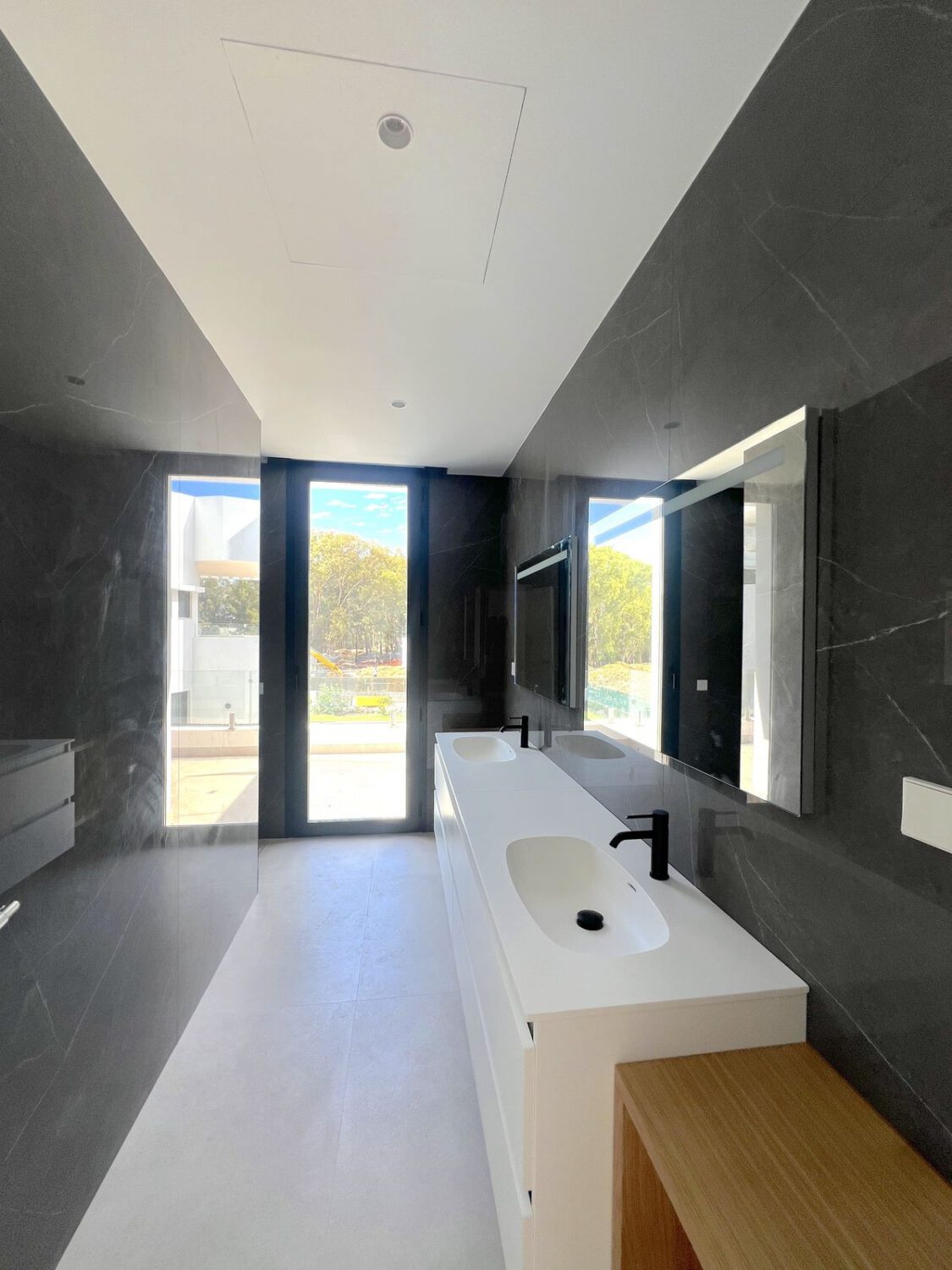 Descubre la epitome de la vida de lujo con esta villa de nueva construcción situada en la prestigiosa Montebiarritz Atalaya. Idealmente ubicada a solo 10 minutos del vibrante Puerto Banús y en estrecha proximidad a las mejores escuelas privadas y a las comodidades esenciales, esta propiedad ofrece tanto conveniencia como elegancia.*Características de la Propiedad:- *Planta Baja*: Experimenta un espacio de vida abierto y aireado donde la cocina integrada fluye sin problemas hacia las áreas de comedor y sala de estar. Este acogedor espacio ofrece acceso directo a un encantador porche y a una impresionante piscina. Además, encontrarás un dormitorio bien equipado con baño en suite, junto con un conveniente baño de invitados.- *Segundo Piso*: Este nivel está dedicado al confort absoluto, con un lujoso dormitorio principal que cuenta con su propia piscina privada y un amplio vestidor. Un dormitorio adicional con baño en suite asegura un alojamiento amplio para familiares o invitados.- *Nivel Subterráneo*: Disfruta del entretenimiento y la relajación en esta amplia área, que incluye dos dormitorios, cada uno con sus propios baños en suite. Disfruta de momentos de calidad en la segunda sala de estar, relájate en la sala de cine, rejuvenece en el spa o gestiona las tareas del hogar sin esfuerzo en el lavadero.Esta exquisita villa combina armoniosamente un diseño moderno con espacios de vida funcionales, lo que la convierte en el santuario perfecto para quienes buscan un estilo de vida refinado en una ubicación codiciada.~