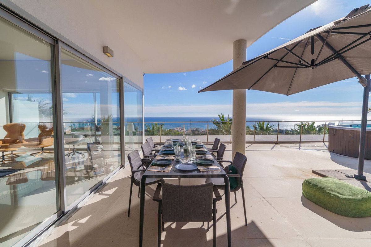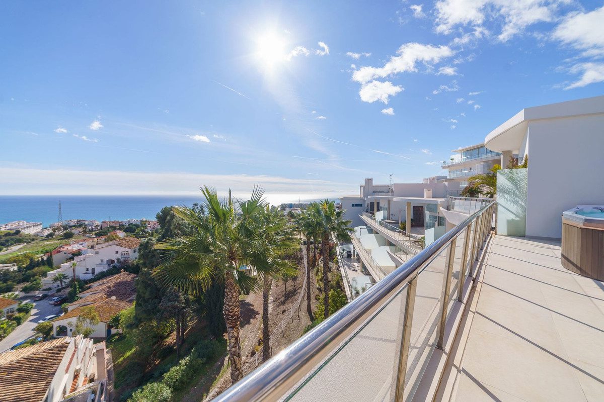 ¡Bienvenido al mejor ático de la prestigiosa comunidad The Hill Collection (1) en Reserva del Higuerón! No se pierda esta increíble oportunidad de adquirir un apartamento con vistas al mar completamente despejadas y listo para entrar a vivir.Este espacioso y lujoso ático (con 138 m2 interiores) ofrece 3 dormitorios, con 3 baños completos en suite, cocina abierta, salón y comedor y una gran terraza, accesible desde todas las habitaciones. La terraza de 106 m2, que tiene una parte cubierta y un gran jacuzzi, se convierte en parte integral del apartamento cuando se dejan abiertas las puertas de la terraza y se disfruta tanto del sol como de las vistas durante todo el año.La distribución de la vivienda permite disfrutar de las vistas al mar desde la cama al despertarse, y es igual de cautivadora cuando se está de pie cocinando o sentado comiendo. A ello se suma la magnífica orientación sur con una maravillosa posición del sol. Además, no hay riesgo de que se construya nada nuevo frente al apartamento, ya que la zona ya está urbanizada con bonitas casas bajas de estilo español.En las zonas comunes hay una zona familiar con 3 piscinas y zona de barbacoa, una piscina infinita con sol por la tarde y una piscina en forma de media luna con zonas de césped a su alrededor, todas ellas ideales para refrescarse.Además, hay, entre otras cosas, amplias zonas ajardinadas, miradores, recepción, una pequeña biblioteca y zonas de reunión. The Hill Collection se encuentra en el corazón de Reserva del Higueron, con acceso a todos los servicios e instalaciones de la zona.Aquí hay un servicio de transporte común que le lleva al centro de negocios con tiendas y restaurantes. También le lleva a la playa y al tren de cercanías que va, entre otros lugares, al aeropuerto y a Málaga, pero también a Fuengirola.En la zona también se encuentra el lujoso hotel Curio Collection by Hilton, con restaurantes de primera clase (uno de ellos con una estrella Michelin), un fantástico spa y un gran club deportivo. Gracias a la proximidad de un gran gimnasio, numerosas clases de entrenamiento (zumba, yoga, pilates, etc.) y varias pistas de pádel y tenis, las posibilidades para mantenerse en forma son infinitas. Con seguridad las 24 horas, 30 000 metros cuadrados de zonas verdes (parques y jardines comunitarios) y todas las demás instalaciones, se trata de una residencia de ensueño.La propiedad se entrega amueblada (pero opcional) con bonitos muebles e incluye 2 plazas de garaje (25 m²) y un gran trastero de casi 10 m² (con una puerta especialmente ancha para poder acceder con la moto).¡Tienes que verla si quieres comprar una propiedad en Higuerón (Benalmádena)! Llámanos o envíanos un mensaje. ~