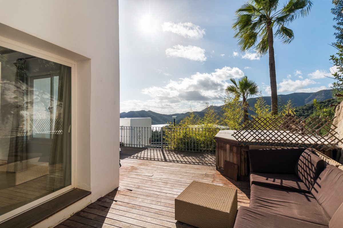 Magnífica casa adosada ubicada en la impresionante urbanización junto al lago de Zahara de Istán, a solo unos minutos en coche de la famosa Milla de Oro de Marbella. La propiedad cuenta con fantásticas vistas al lago de Istán y numerosas características especiales. En la planta baja encontramos un amplio salón-comedor con cocina americana, aseo de invitados, terraza frontal con vistas panorámicas al lago y un amplio patio trasero cerrado, actualmente utilizado como comedor. En la planta superior encontramos tres amplios dormitorios, dos de ellos con baño familiar y el dormitorio principal en suite. Dos de los dormitorios ofrecen espectaculares vistas al lago y al campo, y el tercero da a una terraza trasera. Además, hay un amplio sótano con garaje y amplio espacio de almacenamiento. ¡Ideal para vivir a tiempo completo o como casa de vacaciones!~