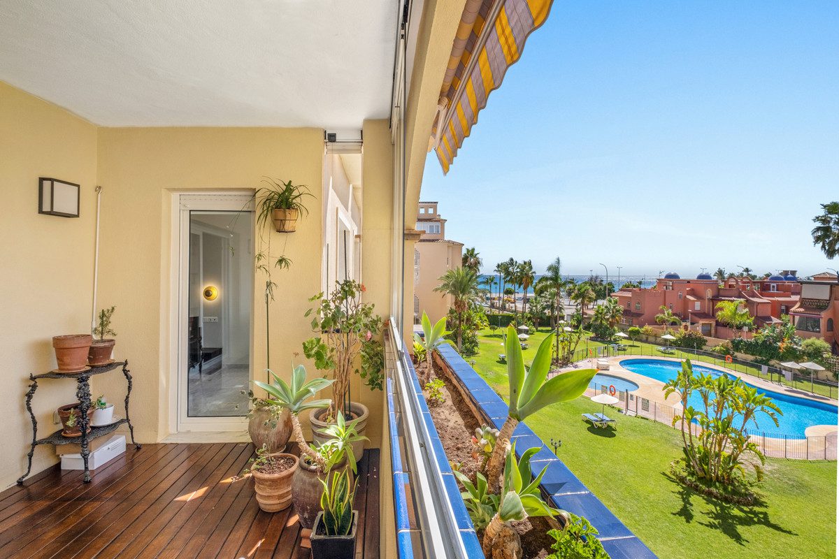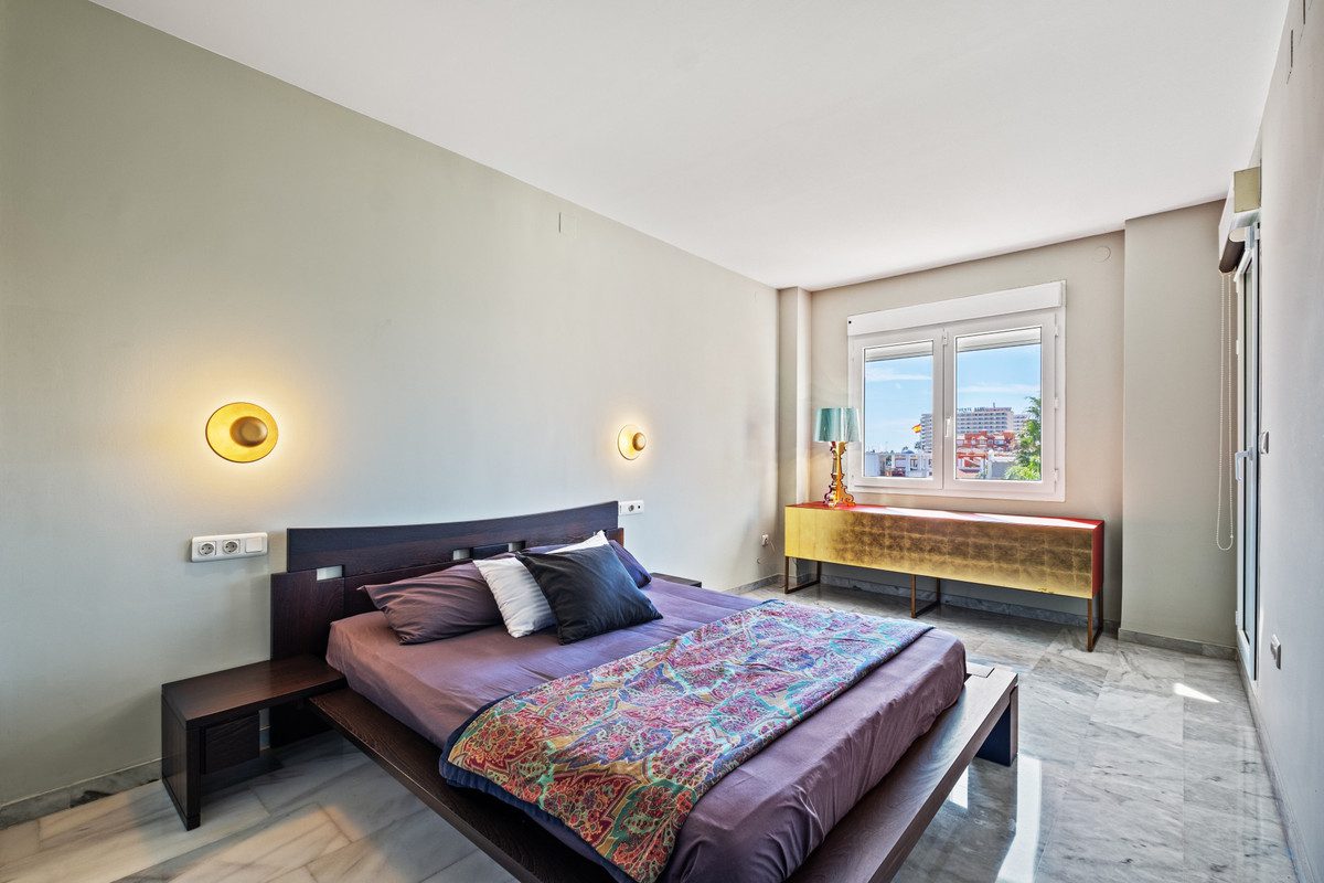 ¿Buscas vivir frente al mar en una ubicación privilegiada? Cerca de parques, colegios, supermercados, restaurantes y bares.Fácil acceso a la autopista, con rápidas conexiones a lo largo de la costa.A solo 5 minutos a pie de la estación de tren de Los Álamos y a 6 minutos en coche del aeropuerto de Málaga.¡No pierda esta oportunidad de vivir en una ubicación inmejorable con todas las comodidades a su alcance!El residencial se encuentra en primerísima linea de playa donde podrás perderte en sus bonitos jardines comunitarios y bañarte en la amplia piscina, todo a solamente un paso del mar. Elemento a destacar, la urbanización cuenta con una salida peatonal privada al bonito paseo marítimo de Torremolinos.¡Vivirás literalmente a pié de playa!Se vende este piso ubicado en la 2ª planta, y en cada planta hay solamente 2 vecinos, cosa que confiere mucha tranquilidad y privacidad. Superficie de 102 m² y reformado con materiales de alta calidad, cuenta con cocina americana, amplio salón comedor con salida a una acogedora terraza que ofrece una oportunidad única de disfrutar de las impresionantes vistas al Mediterráneo desde la comodidad de tu hogar, 2 grandes habitaciones de las cuales la principal de 20 m² y un elegante baño con ducha y bañera de hidromasaje, ideal para relajarte tras un día de playa (en origen eran 2 cuartos de baños independientes, ahora renovados y transformados en un único baño más grande).Características principales:- Terraza acristalada con cortinas Lumon, perfecta para disfrutar del sol o protegerse del viento mientras se contemplan las vistas al mar.- Cocina de la marca Schmidt de primera calidad, completamente nueva.- Garaje privado con puerta automática nueva y trastero.- Persianas automáticas recién instaladas en los dormitorios.- Piscina y jardín comunitarios, ideales para familias.- Ascensor para mayor comodidad.- Acceso directo al paseo marítimo desde la urbanización, lo que facilita los paseos por la playa.¡No pierdas esta oportunidad y ven a visitarlo!~