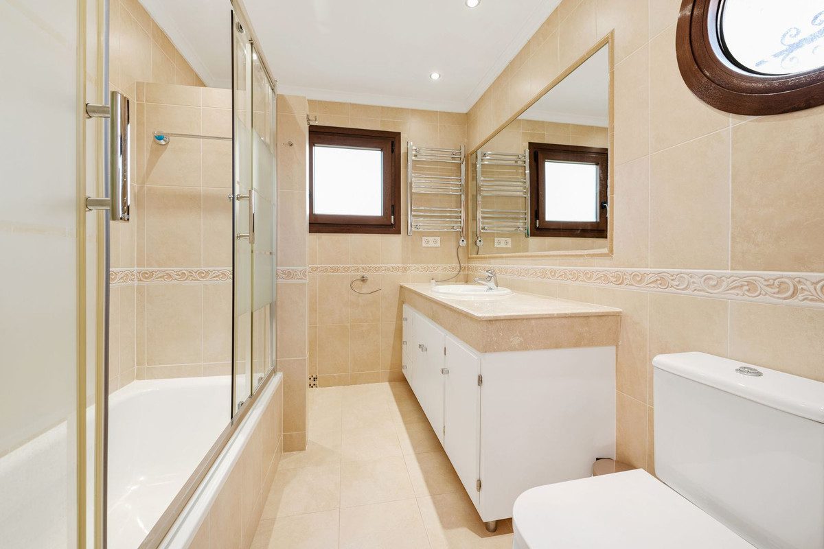 Villa modernizada de estilo andaluz, ubicada en Atalaya Alta.Hay dos dormitorios en la planta baja, un baño, cocina, comedor independiente y salón. A través del salón se accede a una gran terraza cubierta que conduce directamente al jardín y a la gran piscina climatizada.En la primera planta hay tres dormitorios con dos baños, el principal en suite y una terraza privada de gran tamaño.Uno de los dormitorios tiene su propia terraza privada cubierta de gran tamaño, que ofrece maravillosas vistas al jardín, a la piscina, a los alrededores y al mar.Todas las habitaciones con aire acondicionado, puertas y ventanas de doble acristalamiento Kommerling, con persianas eléctricas exteriores integrales.El amplio, tranquilo y paisajístico jardín (de más de 1.000 m²) cuenta con una barbacoa especialmente equipada, tenis de mesa, tiro de baloncesto y palmeras en buen estado, donde se pueden disfrutar hermosas y agradables vacaciones o fiestas entretenidas.Una gran característica es la piscina privada al aire libre climatizada de gran tamaño (12 mx 6 m) (con cubierta eléctrica para las noches más frescas), con glamurosas luces nocturnas LED y una gran cascada de agua. Junto a la entrada de la piscina se encuentra la ducha calentada por energía solar, que brinda comodidad y confort.Villa tiene un garaje independiente y una plaza de aparcamiento adicional en la calle para al menos 2 coches más.El sofisticado sistema de alarma por vídeo hace que esta casa unifamiliar privada sea extremadamente segura y sólida.~