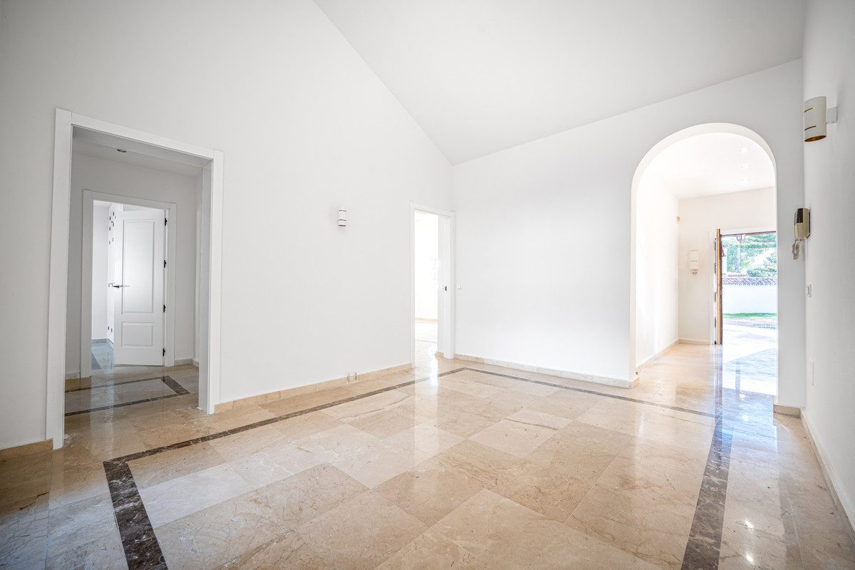 Esta es una villa de 4 dormitorios y 4 baños ubicada en una amplia parcela de 1000sqm en una de las zonas más prestigiosas de Nueva Andalucía. La vivienda tiene vistas al campo de golf Las Brisas y vistas abiertas a La Concha. Ofrece piscina privada, jardín y garaje para tres coches. Está situada en una tranquila calle sin salida y se encuentra a poca distancia a pie de restaurantes, tiendas y todos los servicios. Es una vivienda familiar perfecta en una ubicación privilegiada junto al golf en Marbella.La villa se distribuye en dos niveles con tres dormitorios en la planta baja y la suite principal ocupando toda la planta superior. Tres dormitorios son en suite y existe la opción de crear un quinto dormitorio. La suite principal cuenta con una terraza privada con bonitas vistas. Las grandes ventanas aportan mucha luz natural en toda la casa y crean un ambiente luminoso y abierto.En el exterior encontrará amplias zonas para vivir al aire libre, una barbacoa integrada y un jardín privado ideal para disfrutar y recibir invitados. La propiedad ofrece gran potencial para modernizar o personalizar en una de las ubicaciones más demandadas junto al golf en Nueva Andalucía. Contáctenos hoy para organizar una visita privada.~