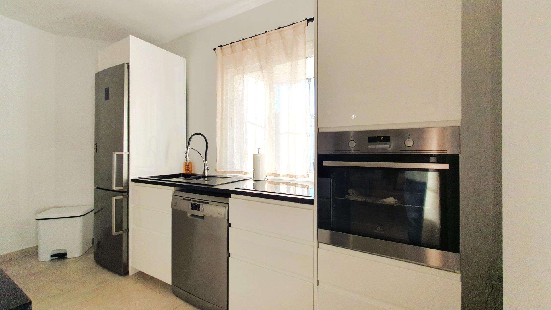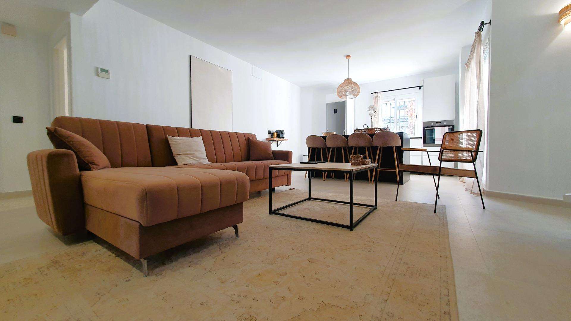 «¡Oportunidad imperdible!~~Presentamos este atractivo y funcional piso reformado, ubicado en Los Naranjos de Marbella. Al ingresar, te recibirá una sala de estar amplia y luminosa, con una moderna cocina abierta completamente equipada, que incluye una barra de desayuno con taburetes, ideal para disfrutar momentos de convivencia.~~A la izquierda de la sala de estar, encontrarás el primer dormitorio, un espacio acogedor con una cama de 105 cm y una ventana que da acceso a una pequeña terraza exterior. El segundo dormitorio, de generosas dimensiones, también cuenta con una ventana que ofrece vistas a la calle. Ambos comparten un baño renovado, elegante y moderno, diseñado con los más altos estándares.~~El tercer dormitorio, el principal, es un espacio luminoso y espacioso con grandes ventanales que ofrecen vistas al exuberante jardín y la refrescante piscina. Este dormitorio cuenta con un lujoso baño en suite, equipado con una elegante ducha a ras de suelo y acabados de calidad premium.~~Situado en la primera planta del complejo, este piso brinda acceso mediante escaleras. El entorno comunitario se destaca por sus cuidados jardines y piscinas, además de contar con un supermercado dentro de la urbanización para una máxima comodidad. La proximidad a colegios lo convierte en una elección perfecta para familias con niños.~~La ubicación es privilegiada, a solo 15 minutos caminando de la playa y a 6 minutos en coche del centro de Marbella, ofreciendo lo mejor de la vida costera y las comodidades urbanas. En resumen, esta propiedad es más que un hogar; es un estilo de vida en la codiciada Costa del Sol. ¡No dejes pasar esta oportunidad de vivir y disfrutar al máximo todo lo que esta ubicación excepcional tiene para ofrecer!~